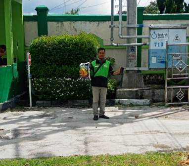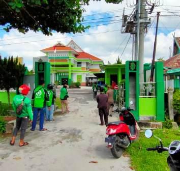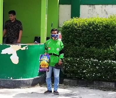 mencuci tangan menggunakan air dan sabun sebelum menerima kantung beras. Para tukang ojek online tampak sabar dan antusias menunggu giliran. Seluruh jajaran KPKNL