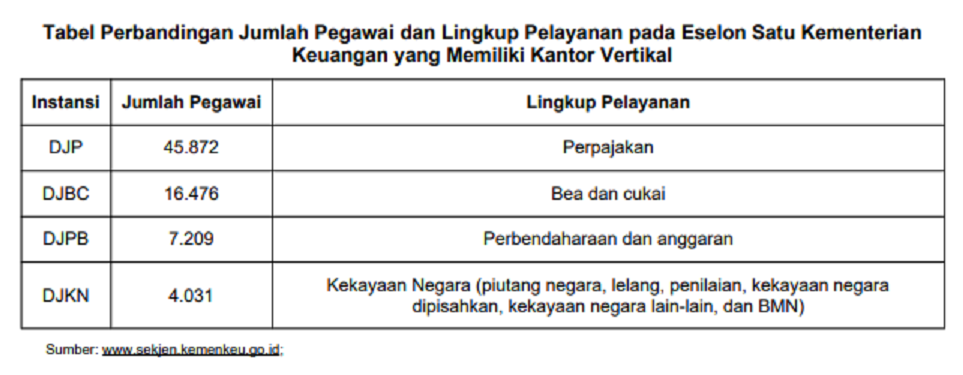 yakni Direktorat Jenderal Pajak, Direktorat Jenderal Bea Cukai, Direktorat