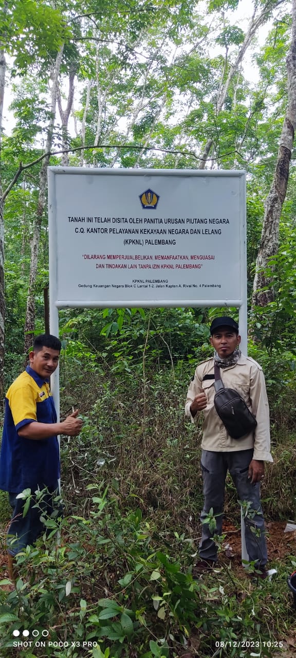 Palembang, 8 Desember 2023 – Kantor Pelayanan Kekayaan Negara dan Lelang (KPKNL) Palembang yang merupakan Panitia Urusan Piutang Negara (PUPN) Cabang Sumatera Selatan bersama pihak kepolisian (Polres Banyuasin dan Polsek Talang Kelapa) melakukan penyitaan dan penguasaan fisik aset tanah melalui pemasangan plang pengamanan di Desa Talang Buluh Kecamatan Talang Kelapa Kabupaten Banyuasin Provinsi Sumatera Selatan.