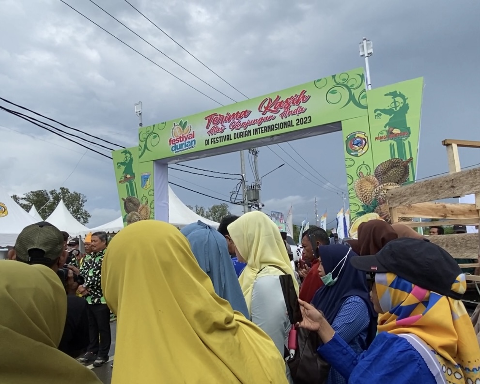 durian gratis di akhir acara. Seluruh pengunjung tumpah ruah di depan panggung