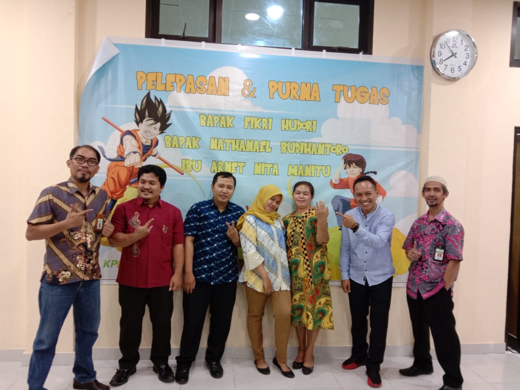 Palu (Jumat, 17/7/2020) - Kantor Pelayanan Kekayaan Negara dan Lelang (KPKNL) Palu menyelenggarakan acara pelepasan pegawai. Terdapat dua orang pegawai pindah tugas karena diangkat dalam Jabatan Fungsional Penilai Pemerintah (JFPP) serta seorang pegawai yang memasuki masa purna bakti.