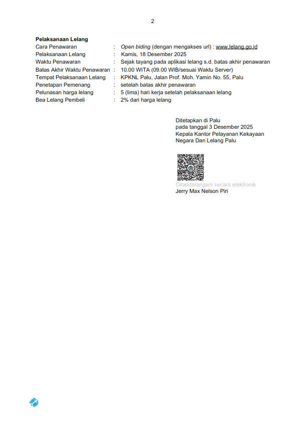 PENGUMUMAN KEDUA LELANG EKSEKUSI PUPN