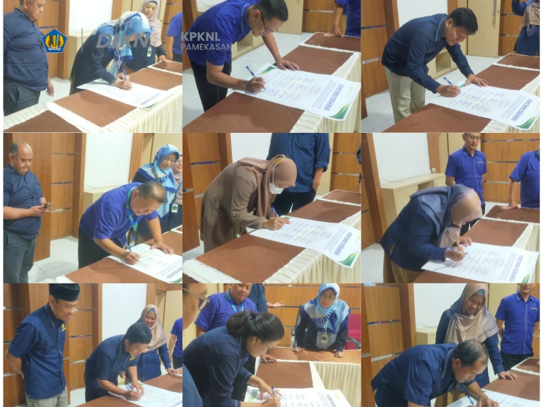 Rabu (26/02) KPKNL Pamekasan, melaksanakan penandatanganan komitmen pegawai oleh seluruh pegawai bertempat di ruang aula lantai 2 Penandatanganan komitmen ini merupakan suatu bentuk pernyataan sikap dan dukungan penuh dari seluruh pegawai untuk mewujudkan keberlanjutan Zona Integritas Wilayah birokrasi Bersih dan Melayani di tahun 2025. Kegiatan ini dipimpin oleh Indera Widajanto selaku Kepala KPKNL Pamekasan. Dalam pengarahannya kepada seluruh pegawai, Indera menyampaikan bahwa dalam mencapai tujuan organisasi dan pelayanan yang baik kepada masyarakat diperlukan sinergi dari seluruh pegawai KPKNL Pamekasan.