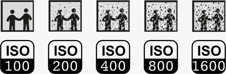 Ukuran standar ISO yaitu 100,200, 400, 800, 1600, 3200, 6400, 128000. ISO yang rendah
