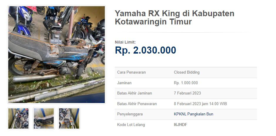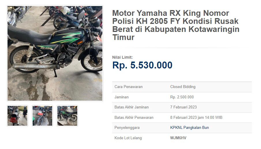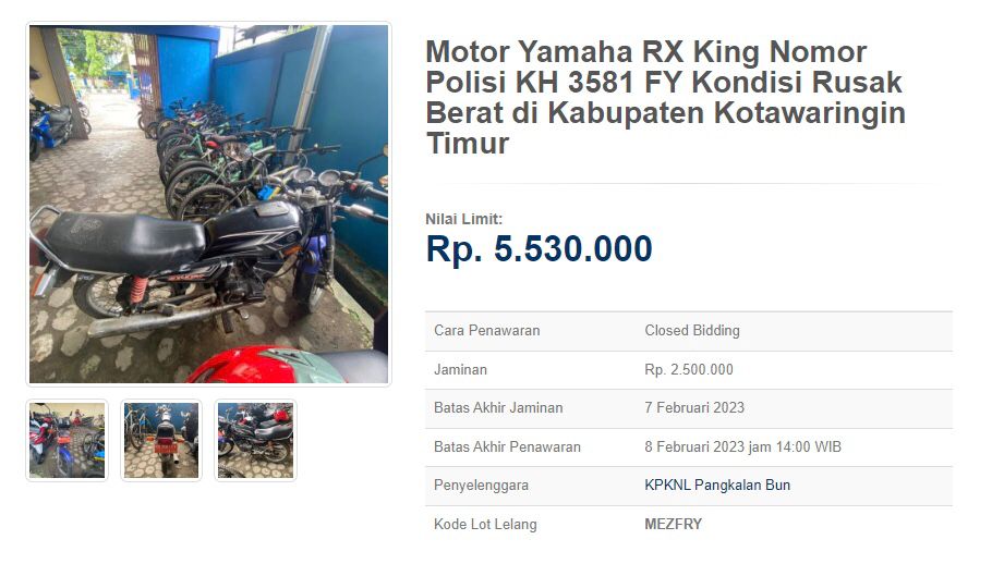 Empat Unit RX King Milik KPP Pratama Sampit akan Dilelang oleh KPKNL Pangkalan Bun