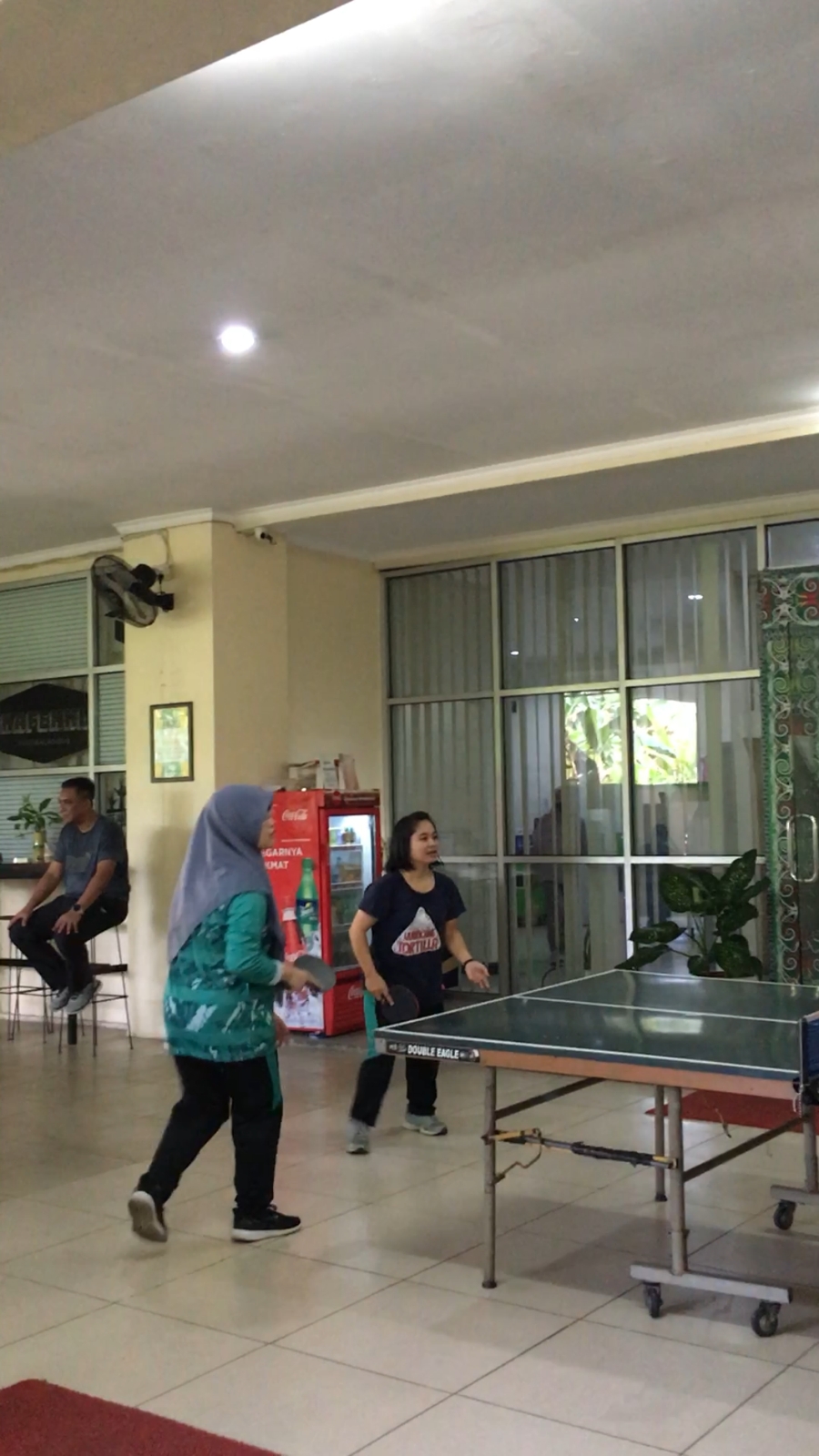 Tak hanya melaksanakan senam, beberapa pegawai juga mengasah kemampuan masing-masing bermain tenis meja di lobby belakang kantor.