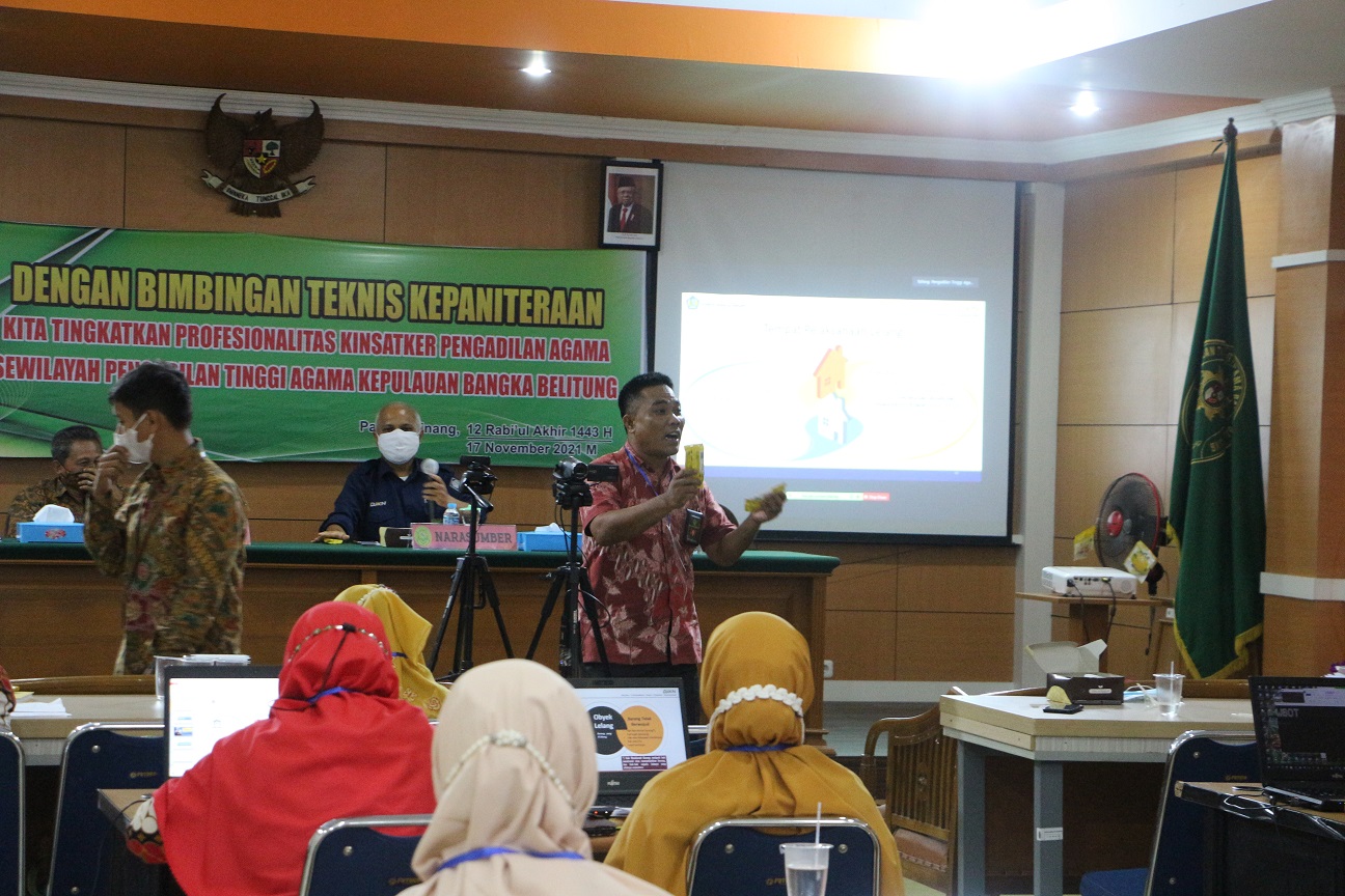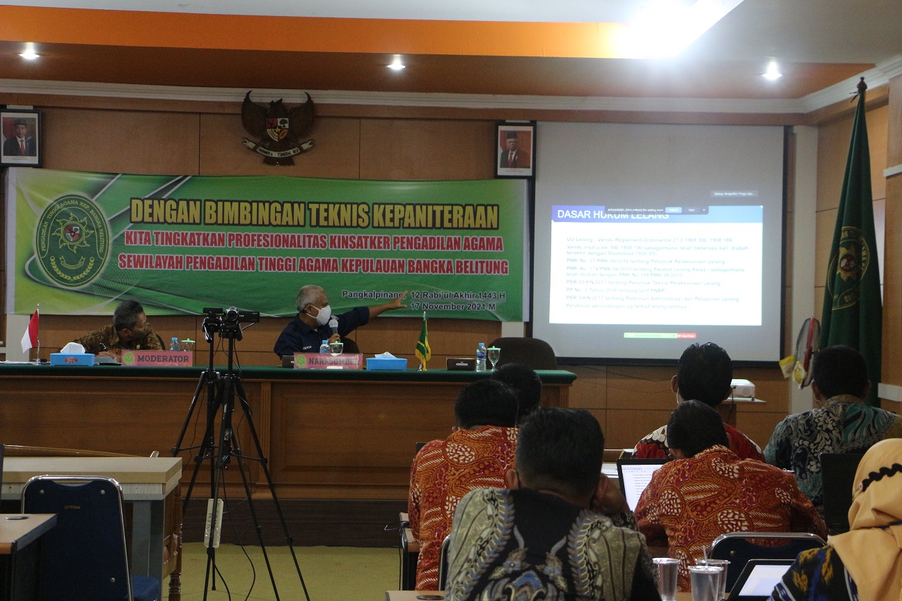Pangkalpinang - Kamis 18 November 2021 Kantor Pelayanan Kekayaan Negara dan Lelang (KPKNL) Pangkalpinang, dalam hal ini diwakili oleh Kepala Seksi Pelayanan Lelang, Apri Eko Isnanto melakukan sosialisasi lelang dan permasalahannya yang bertempat di Pengadilan Tinggi Agama Kepulauan Bangka Belitung.
