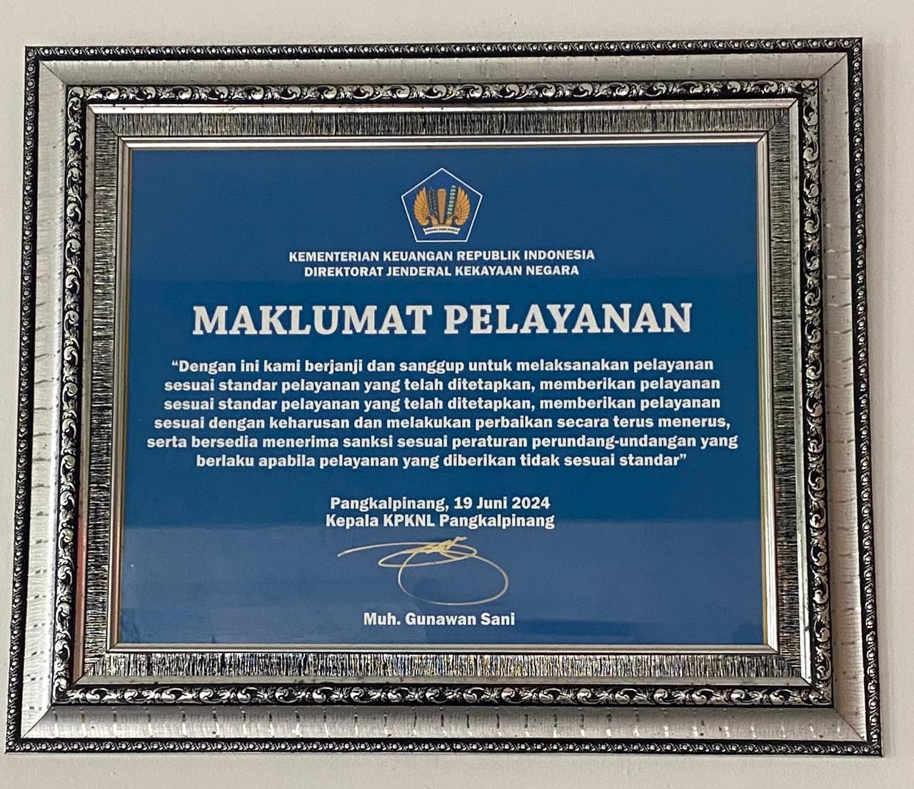 Maklumat Pelayanan KPKNL Pangkal Pinang