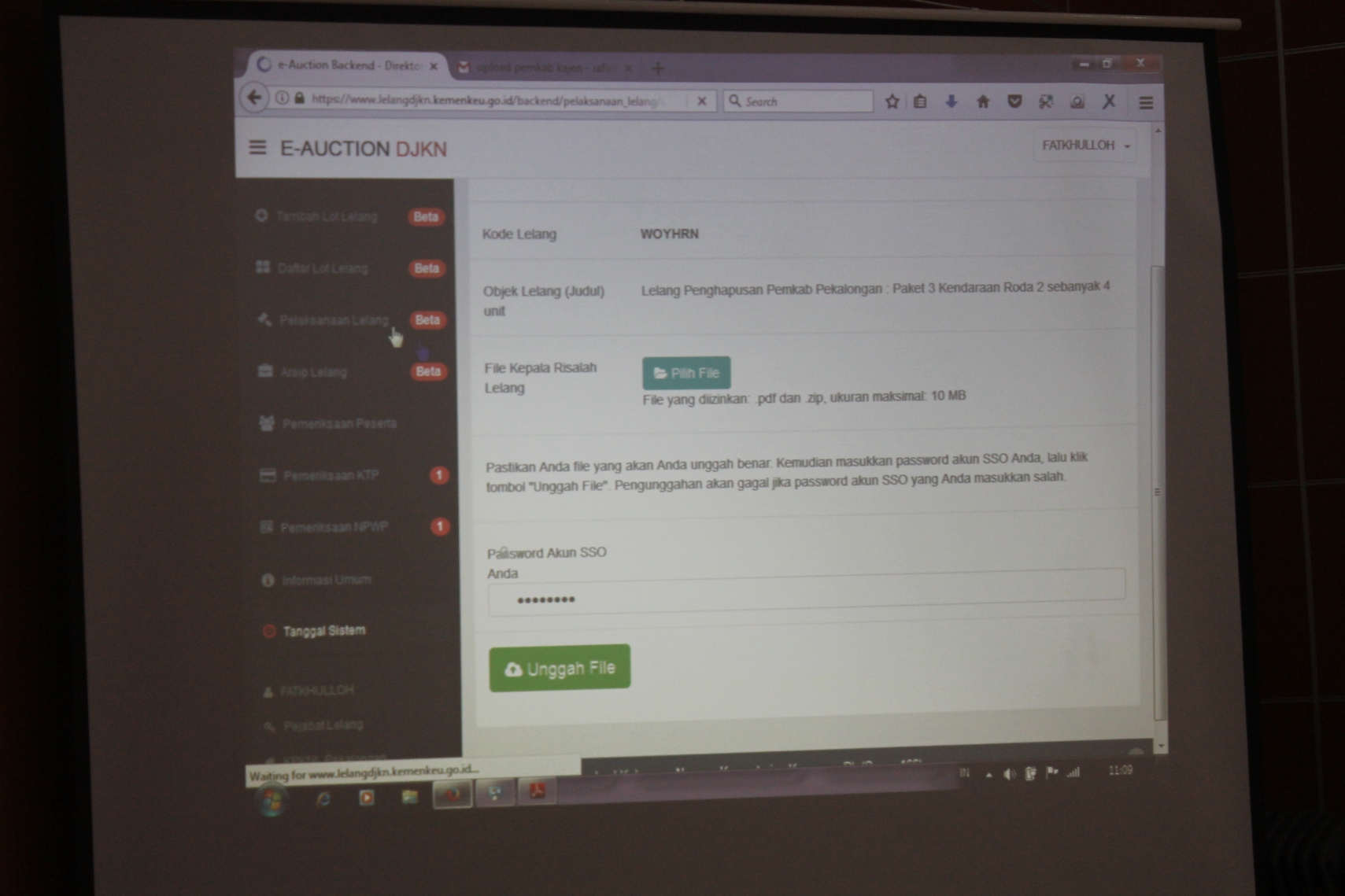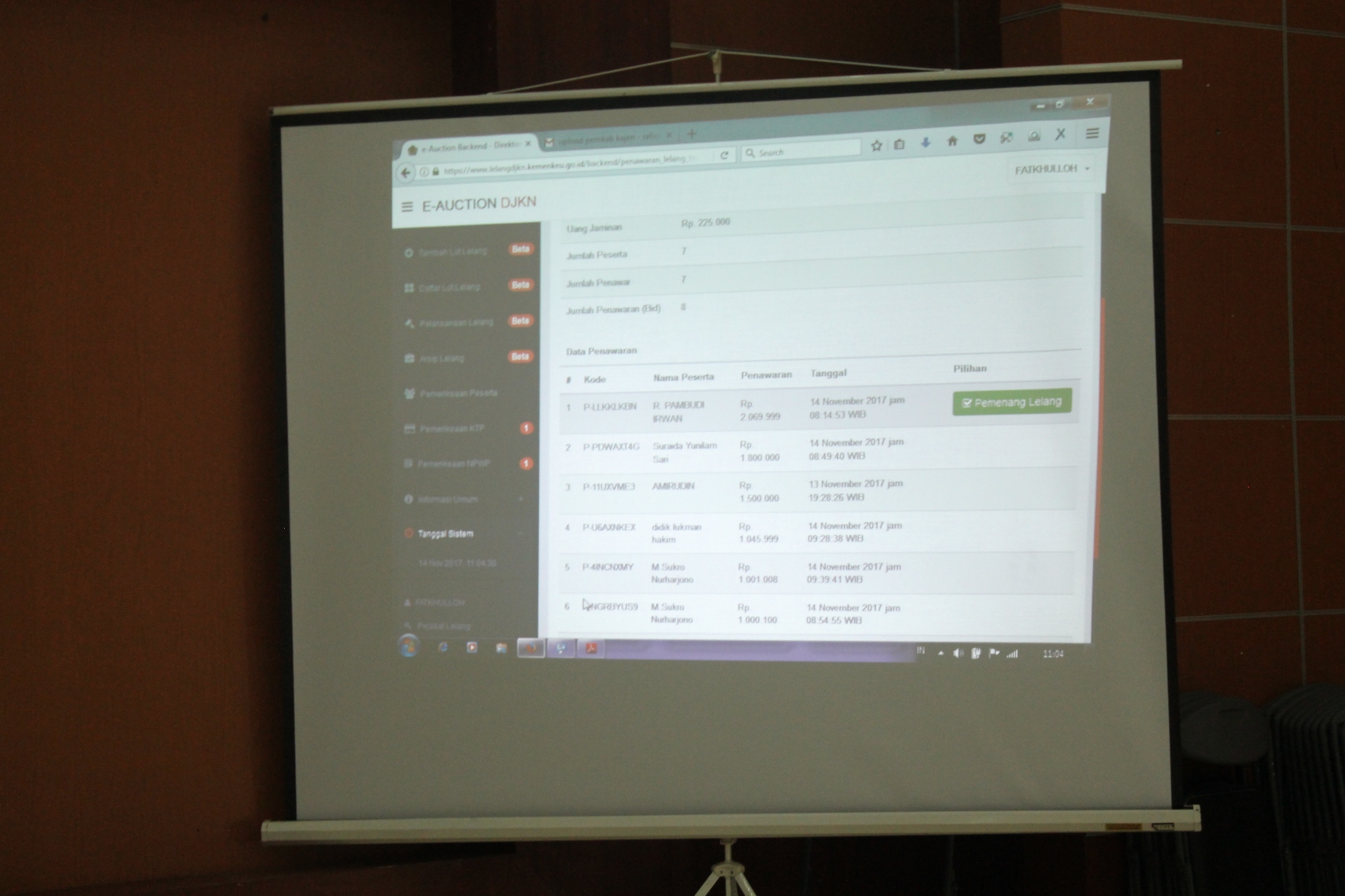 WIB (waktu server). Fathkulloh selaku Pejabat Lelang membuka penawaran dan