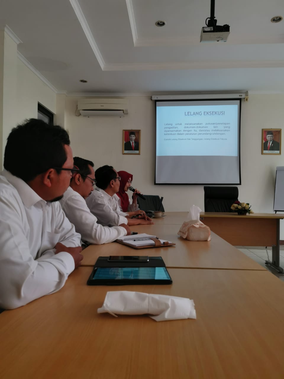 Pada kesempatan yang sama, Lely Noorjanna, Pelelang Muda KPKNL Pekalongan, berbagi informasi mengenai layanan lelang dalam format in house training (IHT). Pelayanan lelang yang merupakan salah satu layanan utama yang diberikan oleh KPKNL Pekalongan. Untuk itu, KPKNL Pekalongan berusaha untuk terus meningkatkan kualitas layanan tersebut dengan menyamakan persepsi seluruh pegawai yang akan bertugas di Area Pelayanan Terpadu.