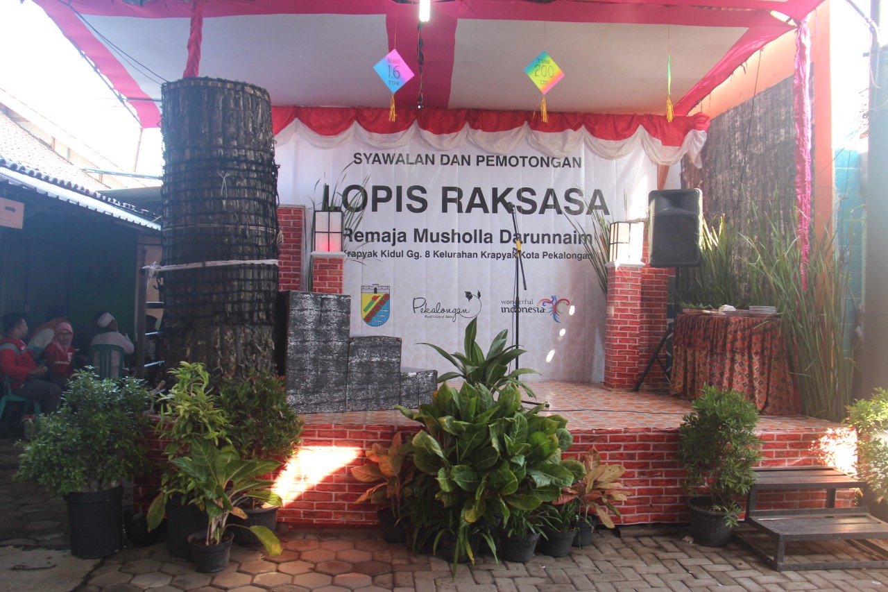 Pada salah satu sudut perkampungan Kota Pekalongan lainnya, tepatnya di Gg Lopis Raksasa, Desa Krapyak, Kecamatan Pekalongan Utara, puncak kemeriahan tradisi Syawalan ditandai dengan pemotongan lopis raksasa oleh Gubernur Jawa Tengah.