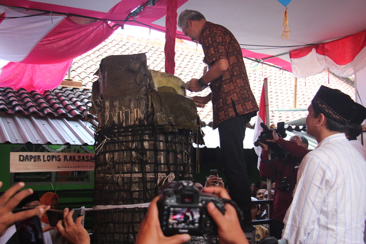 Dalam sambutannya, Ganjar menyampaikan bahwa momen ini menjadi sangat menarik baginya. Lopis raksasa dengan berat 1,6 ton tinggi 2 meter dan keliling lingkaran 2,5 meter ini sarat akan makna persatuan dan gotong royong masyarakat. Bagaimana tidak, pembuatan lopis raksasa ini tentu dilakukan dengan rasa guyub rukun mengabaikan perbedaan atau pilihan politik yang mungkin ada. Sesuatu yang lahir dari perkampungan, bisa menyatukan suasana kebatinan yang ada, demi persatuan Indonesia. Gubernur memberikan apresiasi yang tinggi atas terselenggaranya acara ini dan menyatakan akan mengangkat cerita yang terjadi di Kota Pekalongan hari ini. Bahwa sesuatu yang terlahir dari kampung bisa menyuguhkan situasi yang guyub, tertib, menyatukan dan saling menjaga perasaan. Sesuatu yang sarat akan makna dan merupakan nilai investasi yang sangat mahal.