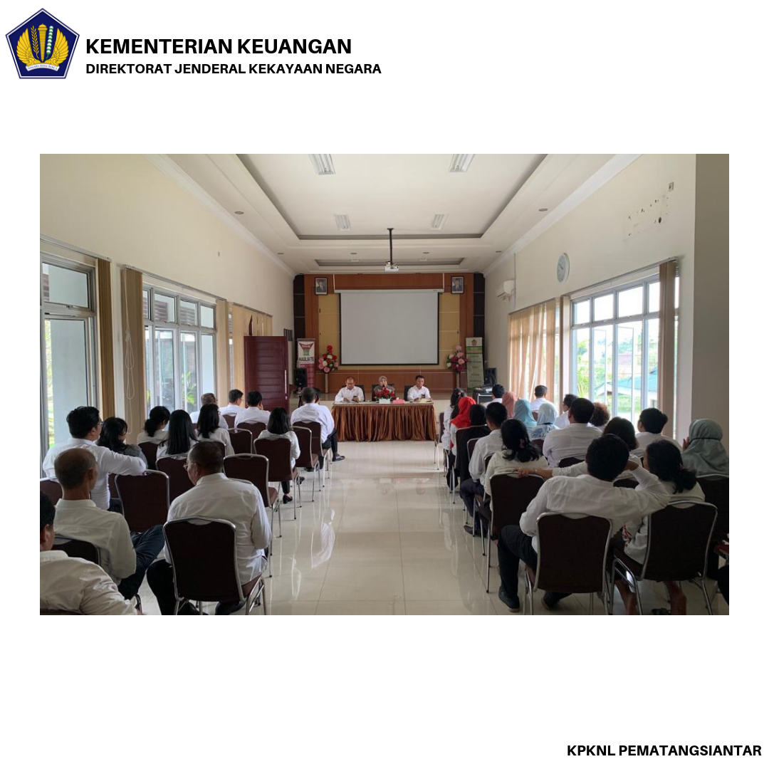 dan dilanjutkan dengan briefing sekaligus perkenalan dengan seluruh pegawai KPKNL Pematangsiantar, yang bertempat di aula