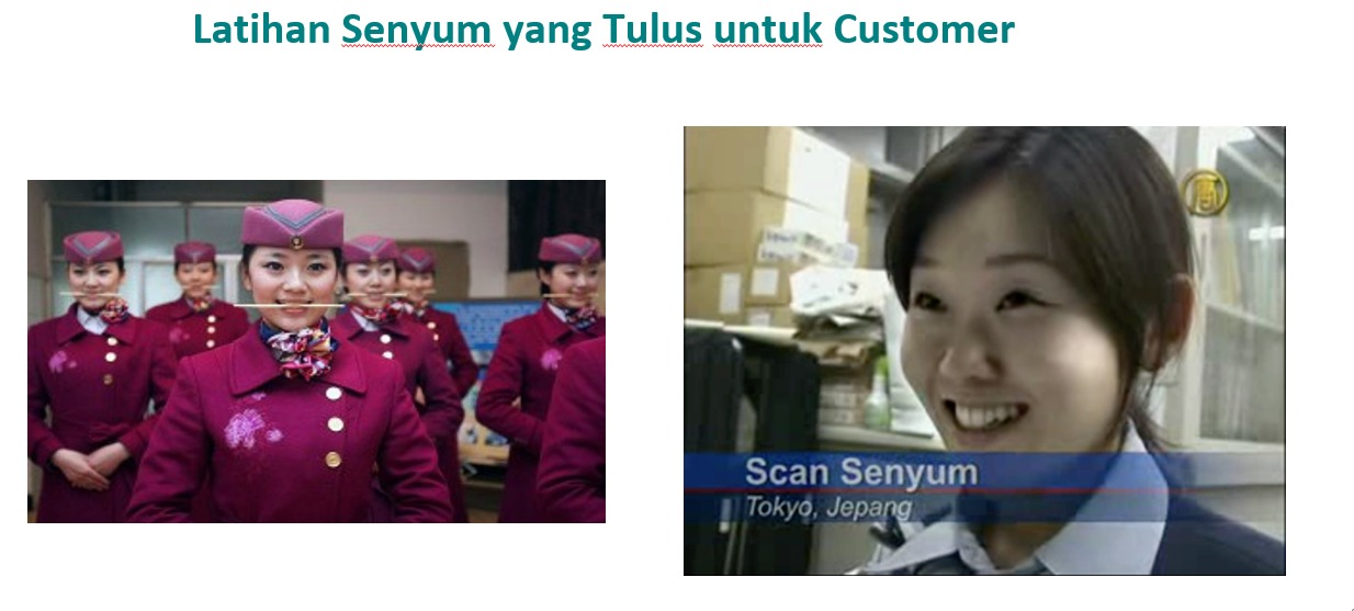 service meliputi senyum, salam, sapa, sopan, santun, semangat dan solusi. Kita harus sering latihan senyum yang tulus, karena ketika kita tersenyum dan ceria dalam bekerja, pengguna layanan pun akan tersenyum. Senyum