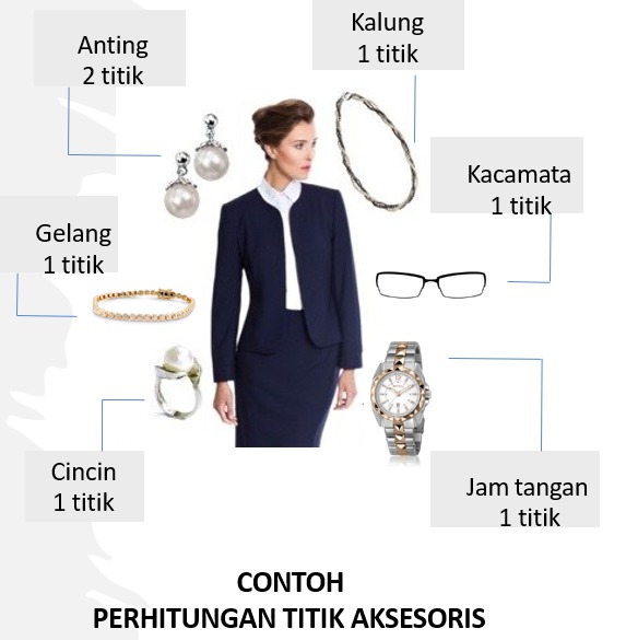 diperkenankan untuk mencegah bau badan, diperkenankan menggunakan perhiasan maksimal tujuh titik. Adapun standar aksesoris wanita berupa
