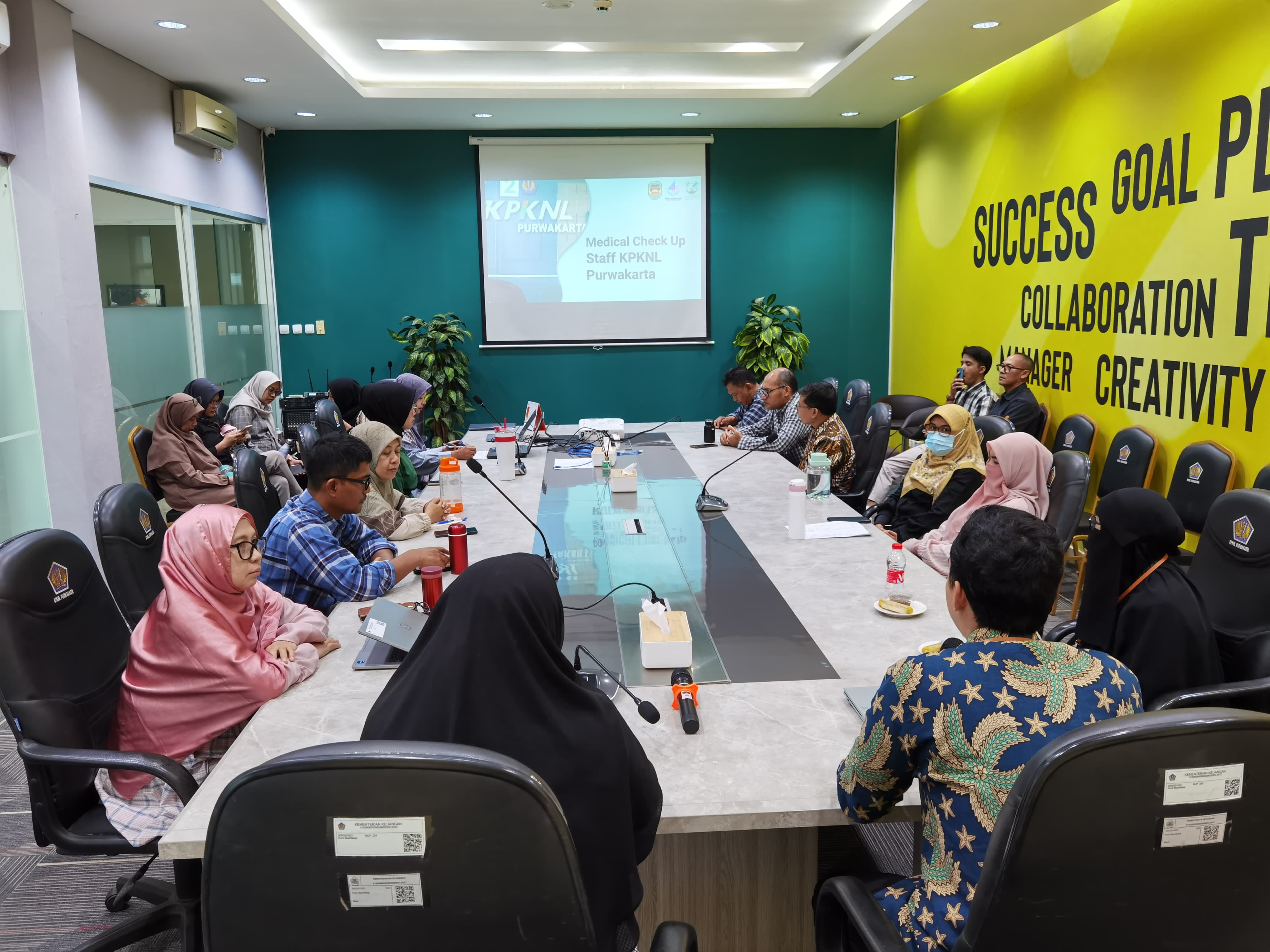 KPKNL Purwakarta bekerja sama dengan Laboratorium Kesehatan (Labkes) Purwakarta menyelenggarakan Medical Chek Up untuk seluruh pegawai KPKNL Purwakarta baik Aparatur Sipil Negara (ASN) maupun Pegawai Pemerintah Non Pegawai Negeri (PPNPN) pada hari Selasa Selasa 8 Juli 2025 di KPKNL Purwakarta Jalan Siliwangi Nomor 9 Purwakarta. Medical Chek Up ini meliputi pemeriksaan laboratorium 15 macam dari hematologi, 11 macam dari kimia klinik serta urinalisa 12 macam dari makroskopis dan 6 macam dari mikroskopis/sedimen. Pada hari itu juga pukul 15.00 WIB hasilnya pun dapat diketahui oleh masing-masing pegawai yang melakukan pemeriksaan, selanjutnya dari hasil pemeriksaan tersebut dapat dikonsultasikan kepada dokter yang ada di Labkes Purwakarta.