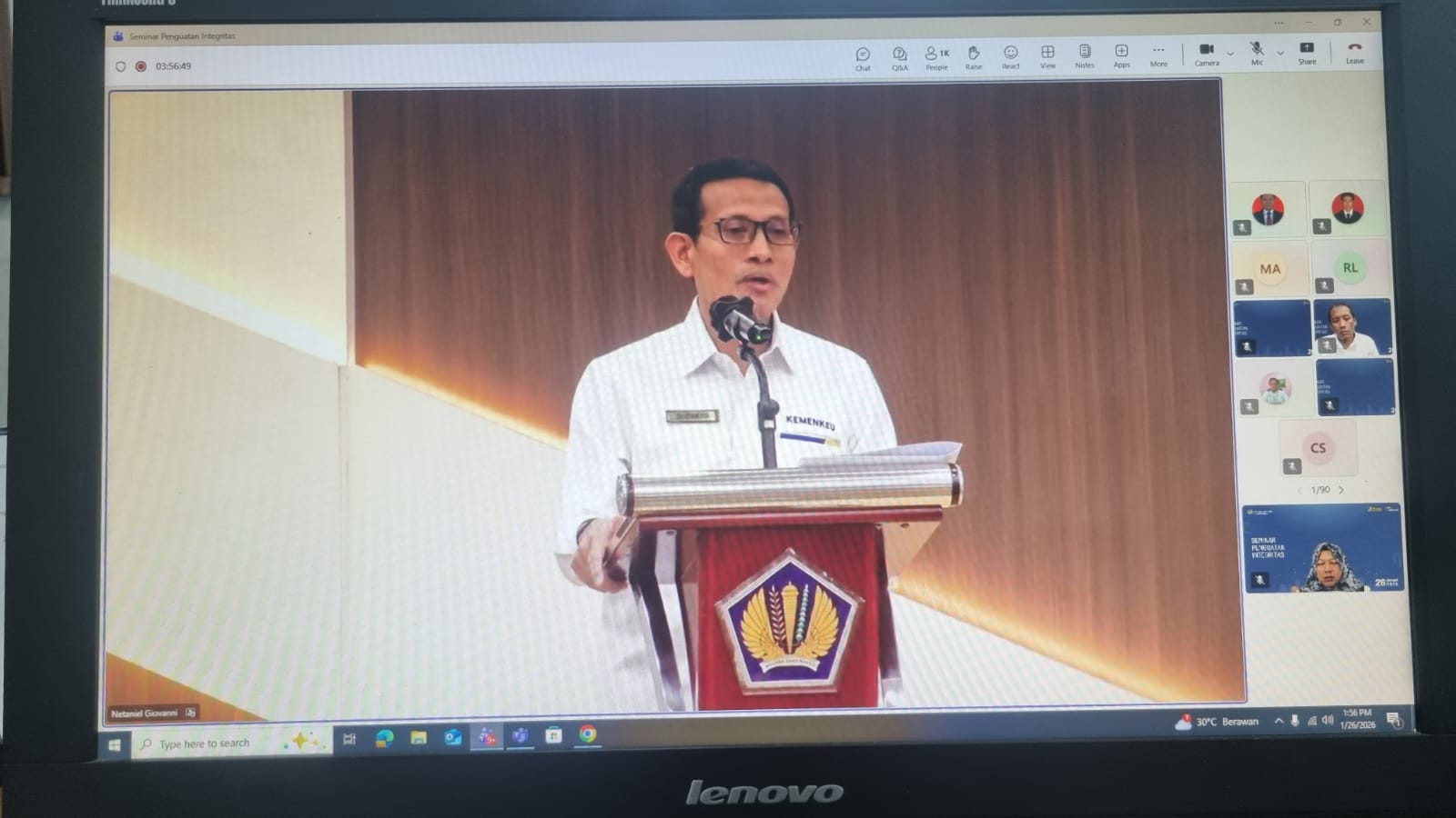 Sumber: Pakta Integritas KPKNL Purwakarta tanggal 21 Januari 2026 dan Seminar Seminar Penguatan Integritas Kementerian Keuangan tanggal 26 Januari 2026