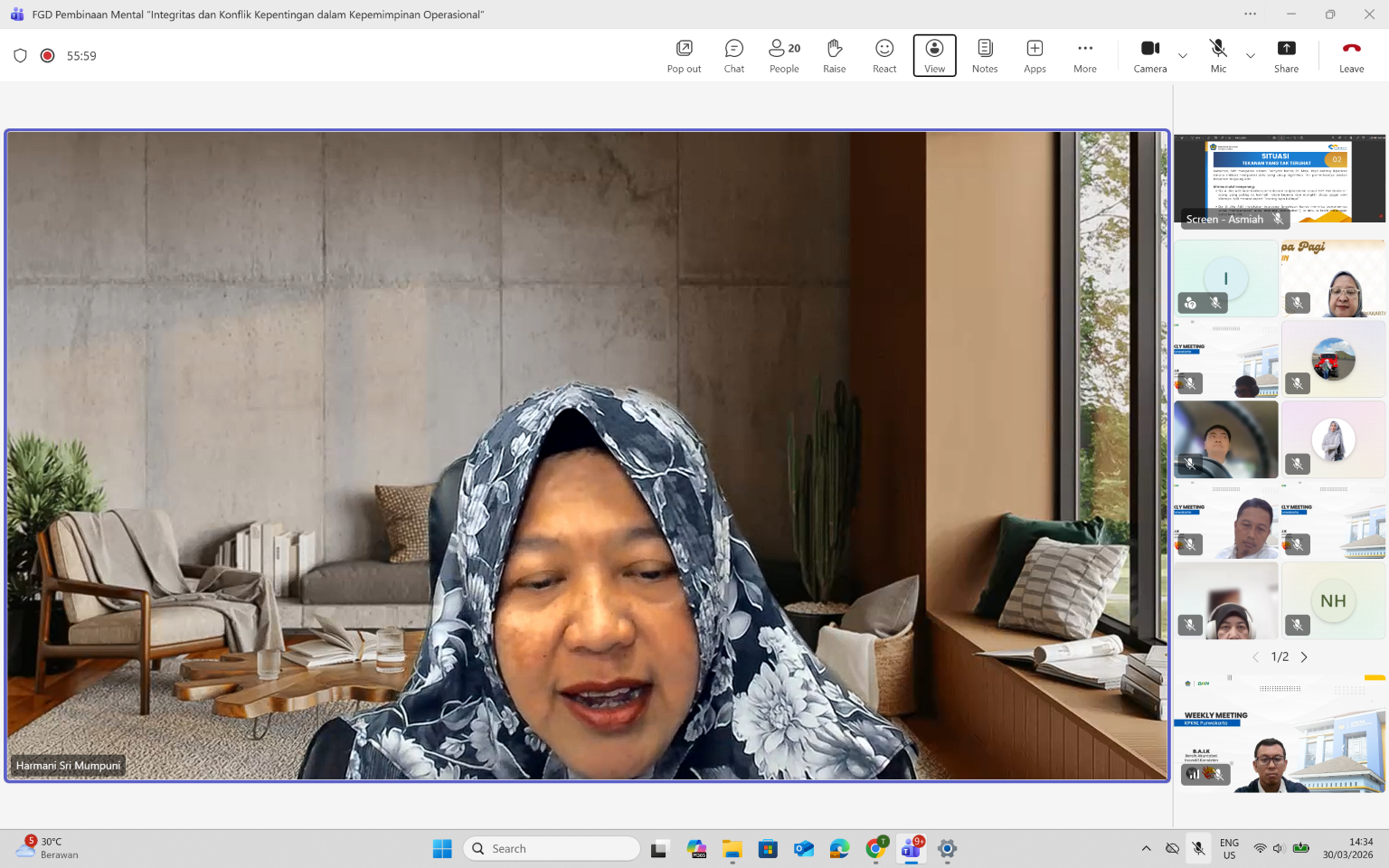 Purwakarta – Kantor Pelayanan Kekayaan Negara dan Lelang (KPKNL) Purwakarta menyelenggarakan Focus Group Discussion (FGD) bertema “Integritas dan Konflik Kepentingan dalam Kepemimpinan Operasional” sebagai bagian dari implementasi arahan Kantor Pusat Direktorat Jenderal Kekayaan Negara (DJKN). Kegiatan yang diadakan pada Senin (30/3) ini, dipimpin langsung oleh Kepala KPKNL Purwakarta, Harmani Sri Mumpuni ini.