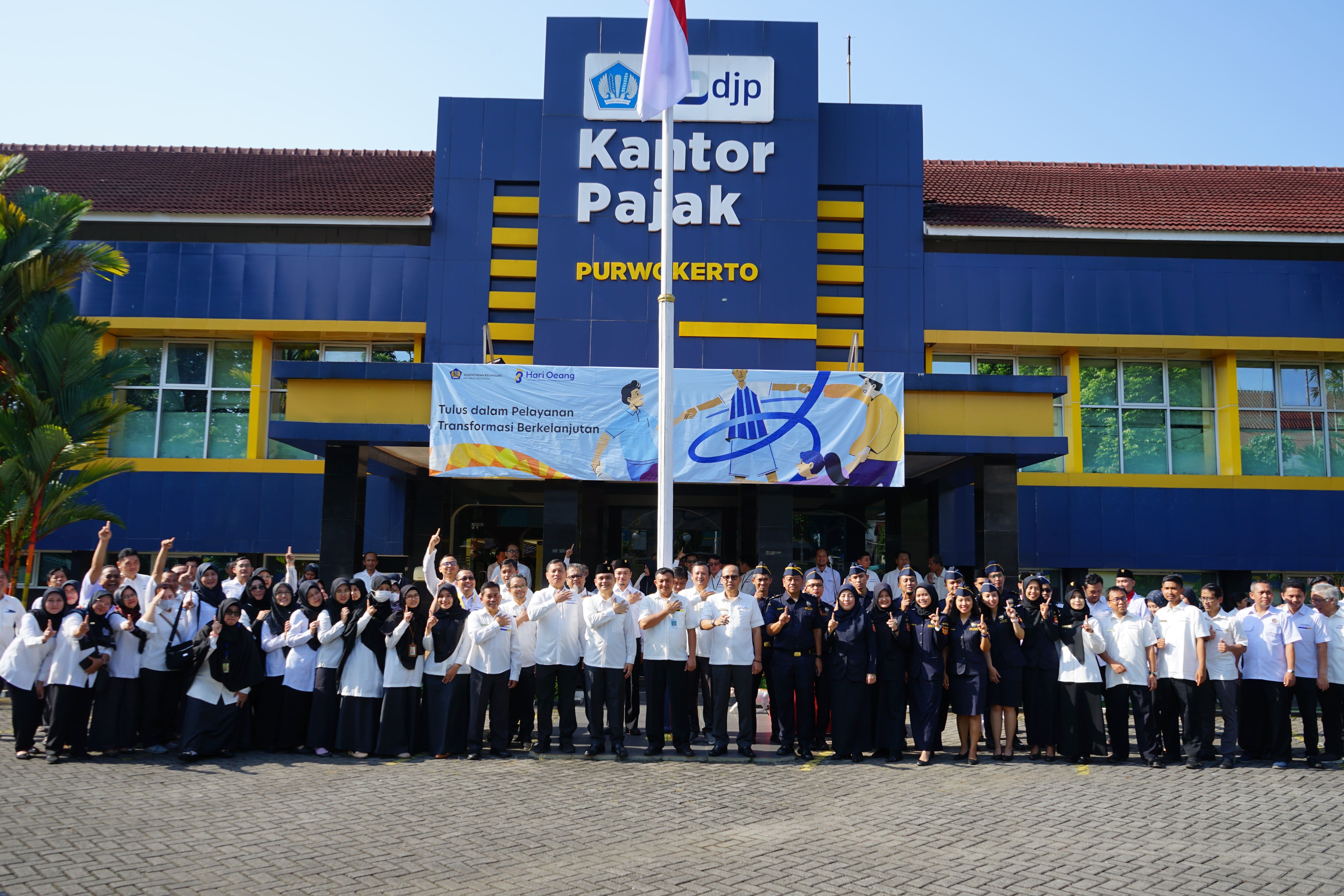 Purwokerto - Rabu (30/10), Perwakilan Kementerian Keuangan Satu (Kemenkeu Satu) Banyumas Raya menggelar upacara bendera peringatan Hari Oeang Republik Indonesia (HORI) ke-78. Kegiatan yang dimulai pada pukul 07.15 WIB tersebut dilaksanakan di halaman Kantor Pelayanan Pajak (KPP) Pratama Purwokerto, Jalan Gatot Subroto Nomor 107, Kebondalem, Kelurahan Purwokerto Lor, Kecamatan Purwokerto Timur, Kabupaten Banyumas. Upacara dihadiri oleh para kepala kantor beserta masing-masing 20 orang perwakilan pegawai di lingkungan Kementerian Keuangan Banyumas Raya yang terdiri atas Kantor Pelayanan Kekayaan Negara dan Lelang (KPKNL) Purwokerto, Kantor Pelayanan Pajak (KPP) Pratama Purwokerto, Kantor Pelayanan Perbendaharaan Negara (KPPN) Tipe A1 Purwokerto, Kantor Pengawasan dan Pelayanan Bea dan Cukai (KPPBC) Tipe Madya Pabean C Purwokerto, dan KPP Pratama Purbalingga, dengan Pembina Upacara Raden Agus Setiawan, Kepala KPP Pratama Purwokerto. Upacara tersebut sekaligus sebagai peringatan Hari Sumpah Pemuda ke-96 yang jatuh pada tanggal 28 Oktober 2024 yang lalu.