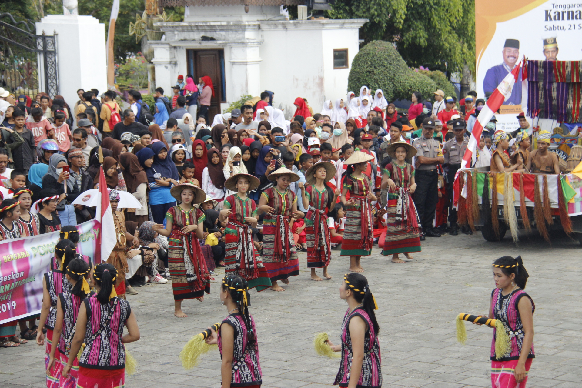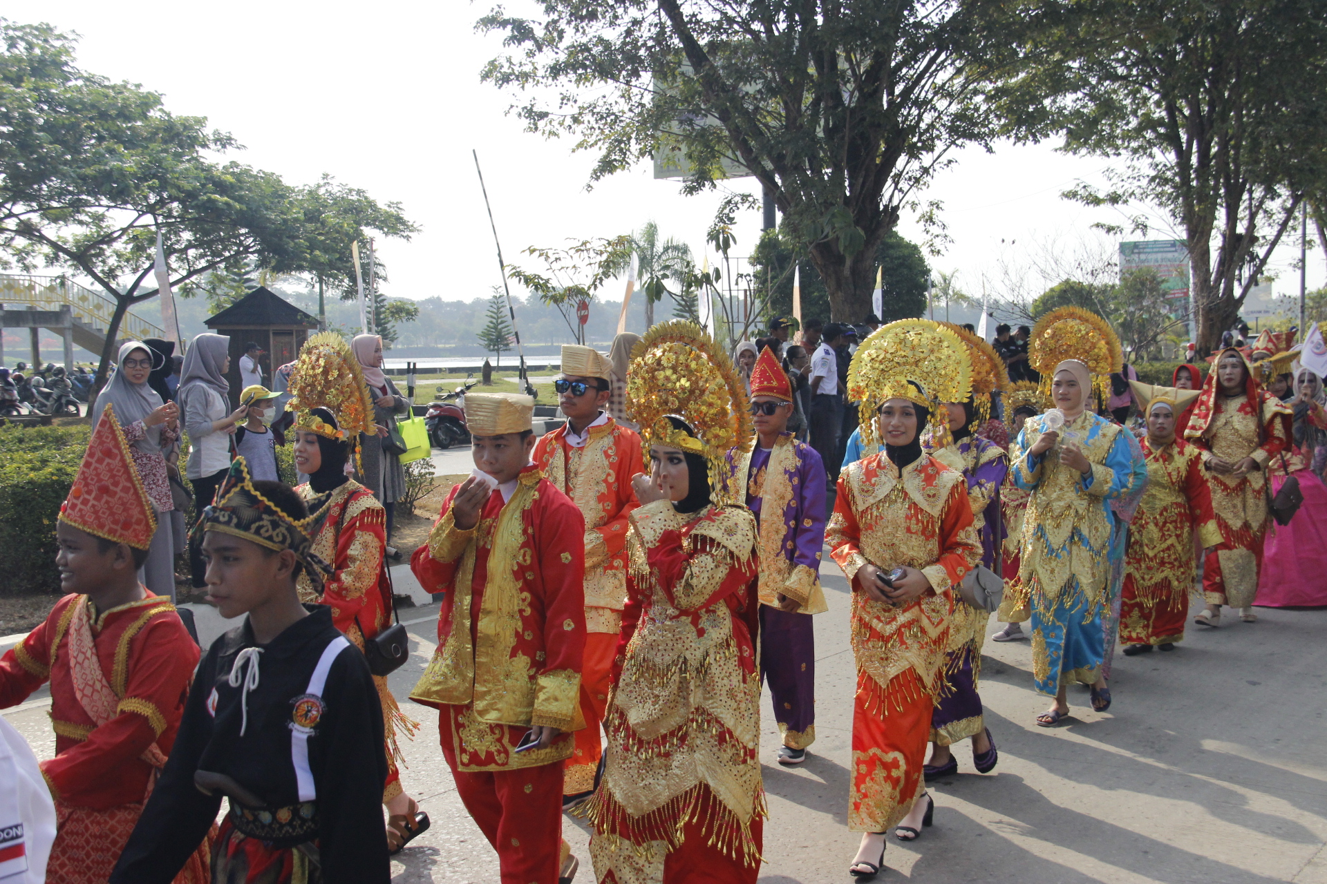 Kartanegara. Masing-masing kelompok peserta menampilkan kostum khas dari daerah
