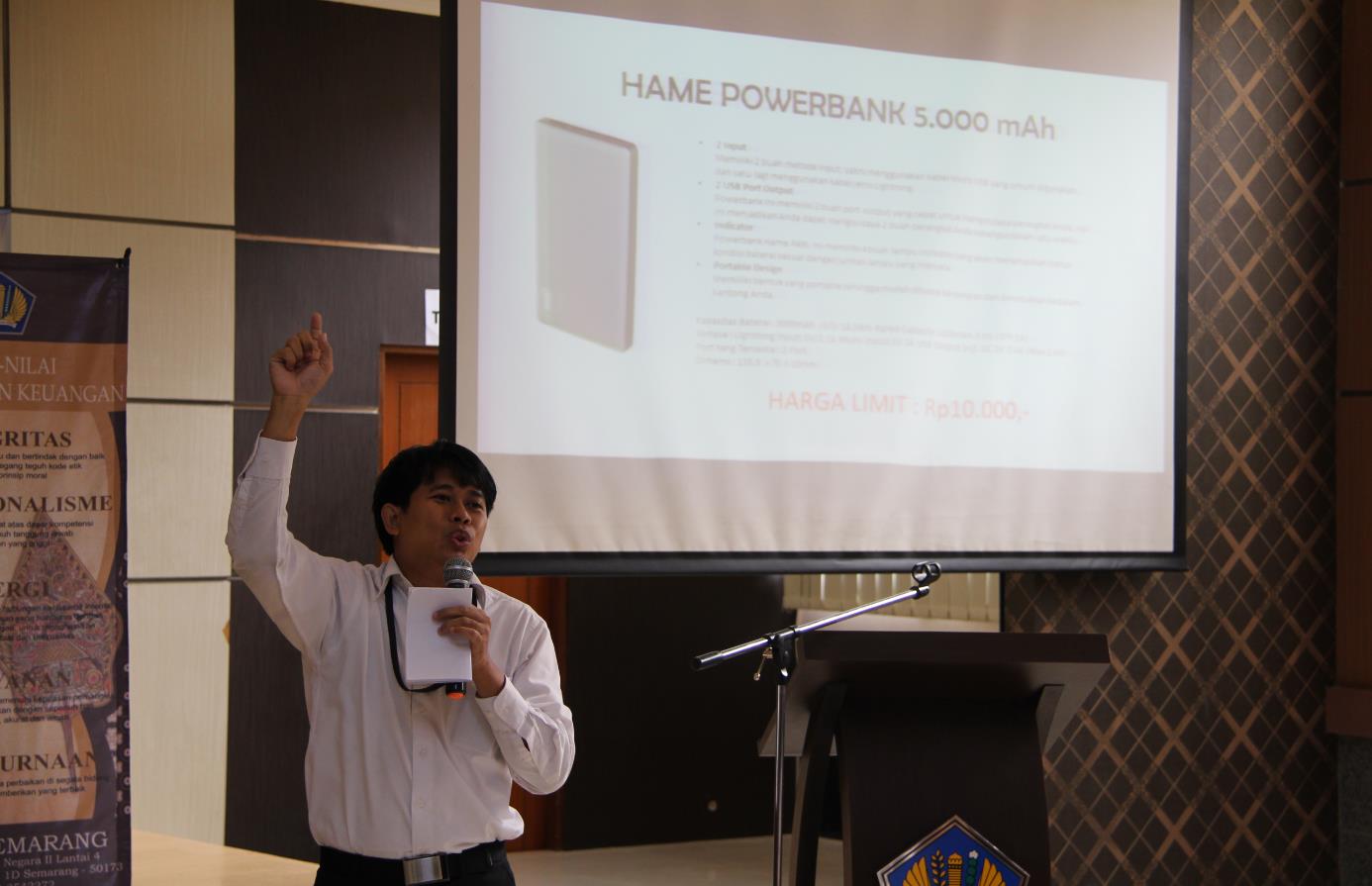 layanan lelang, Kepala Seksi Pelayanan Lelang, Achmad Mulyono, mempresentasikan