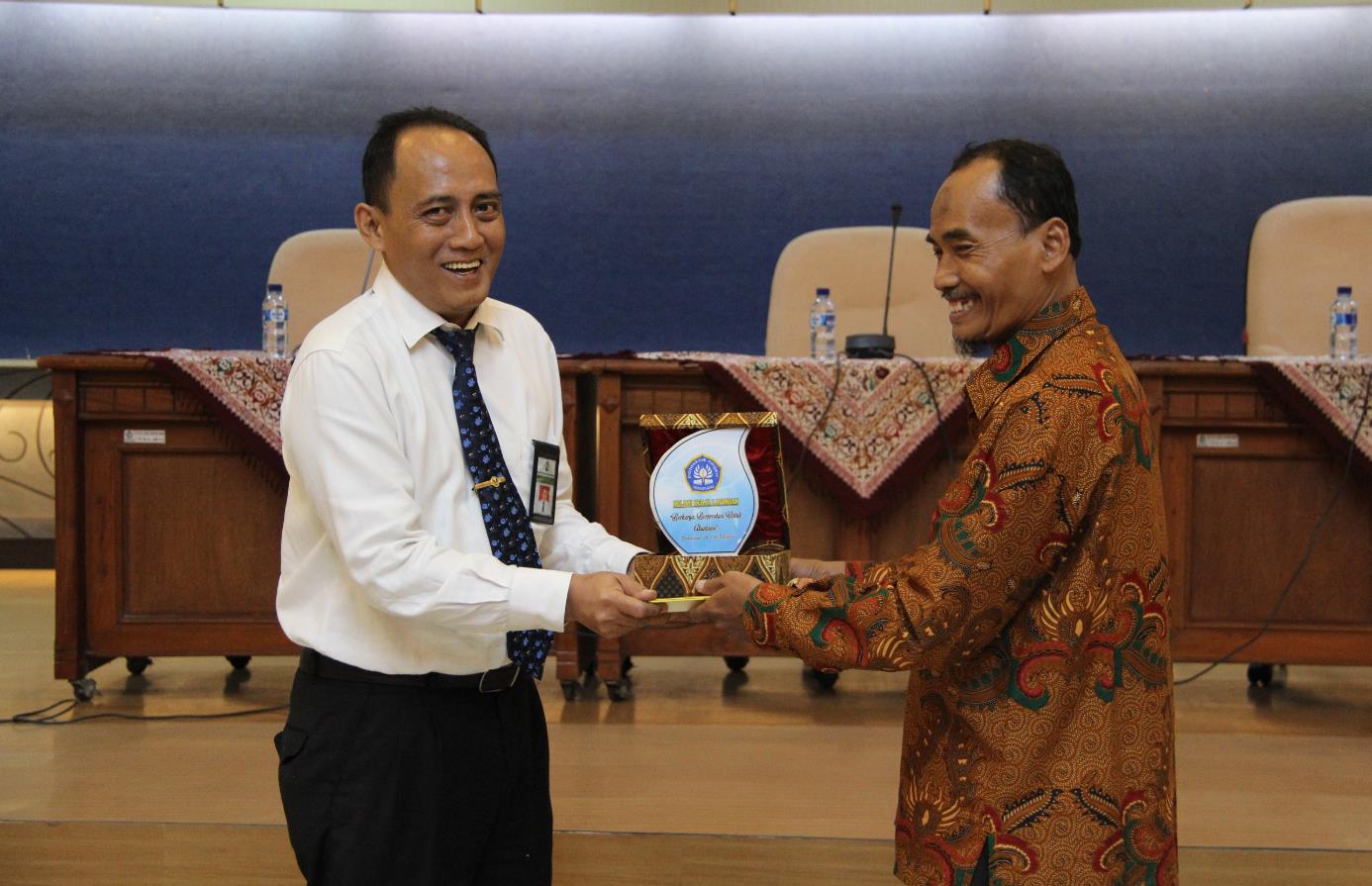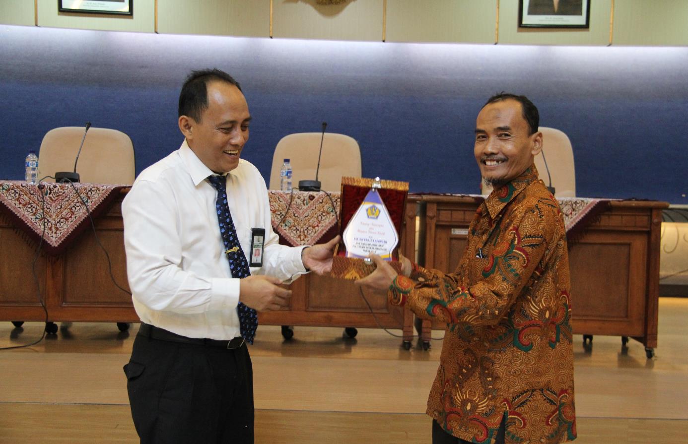 Pendamping dari Polines memberikan plakat kepada Kepala KPKNL Semarang dengan ucapan terima kasih. “Terima kasih banyak kita