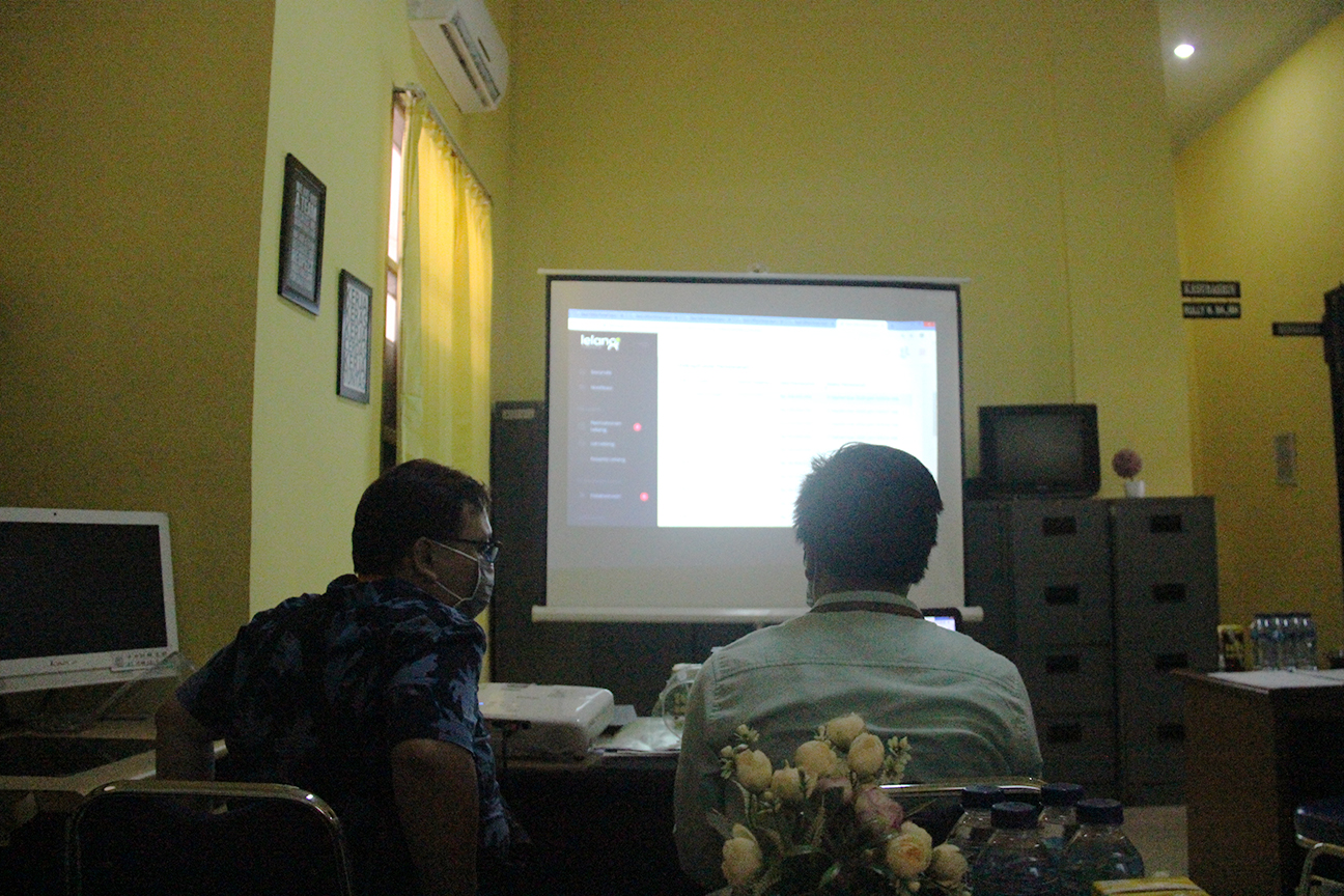 pengukuran suhu tubuh oleh petugas. Di dalam ruangan pelaksanaan lelang, setiap