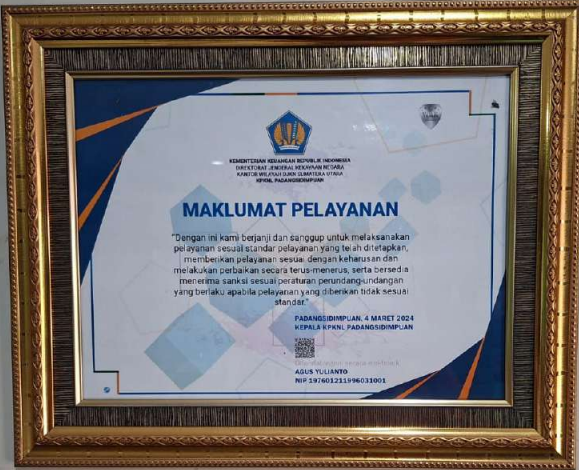 Maklumat Pelayanan KPKNL Padang Sidempuan