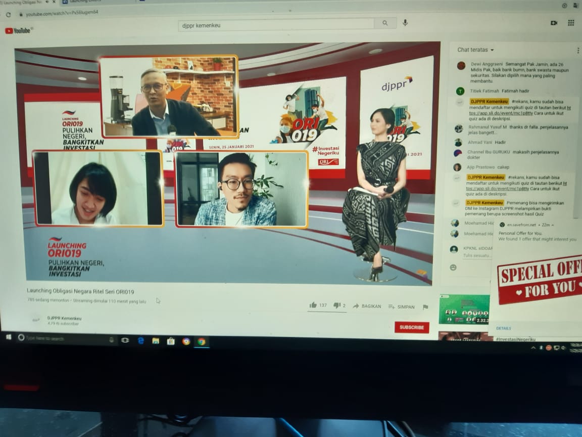 Obligasi Negara Ritel seri ORI019 sejak 25 Januari 2021 kemarin dengan