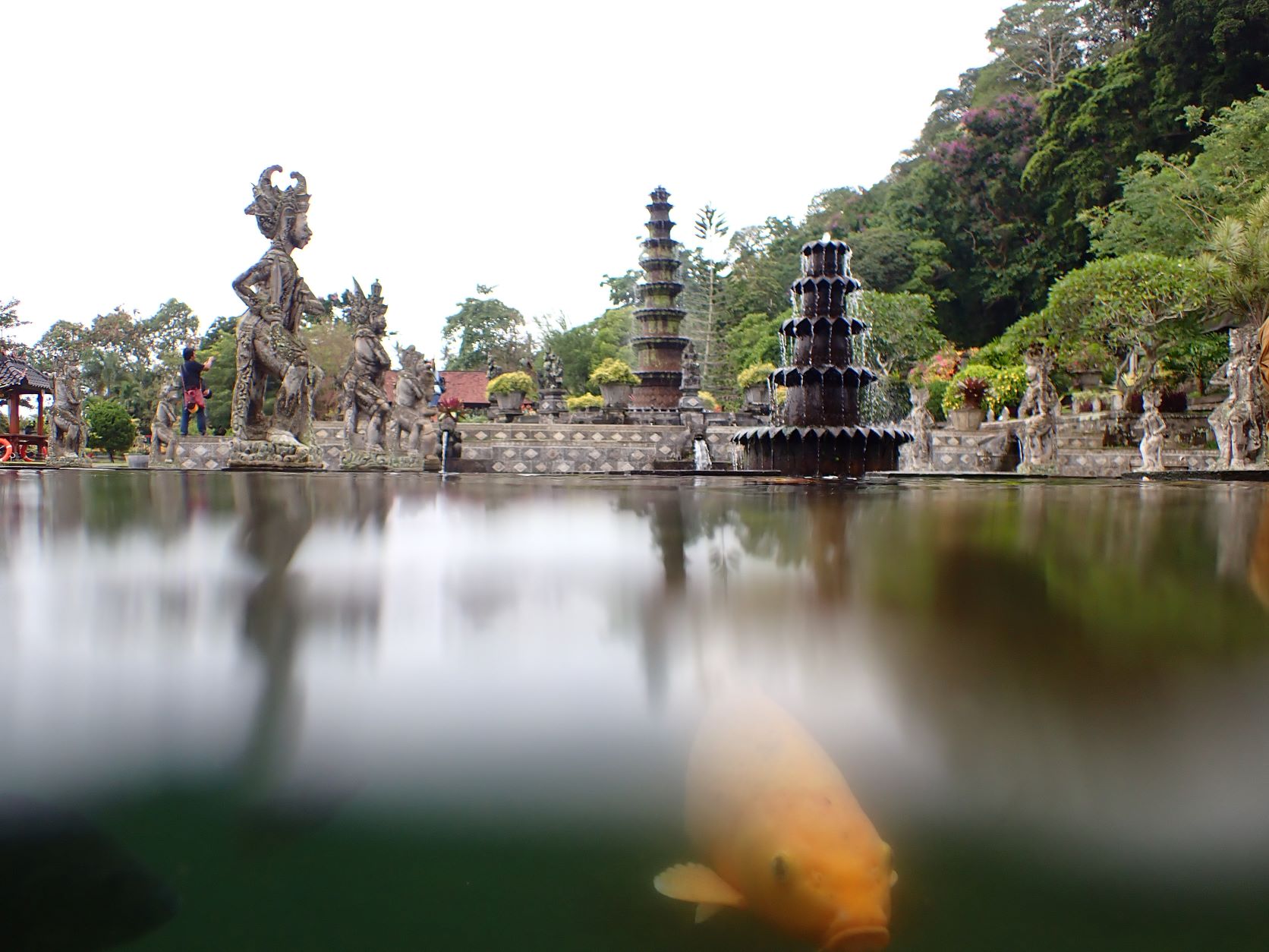 ketinggalan adalah berfoto. Beragam ornamen indah menghiasi kolam dengan patung