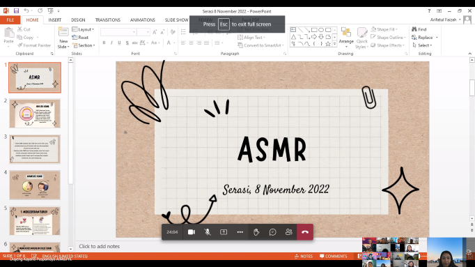 tertentu. Pemateri menceritakan awal mula istilah ASMR diciptakan pada tahun 2010