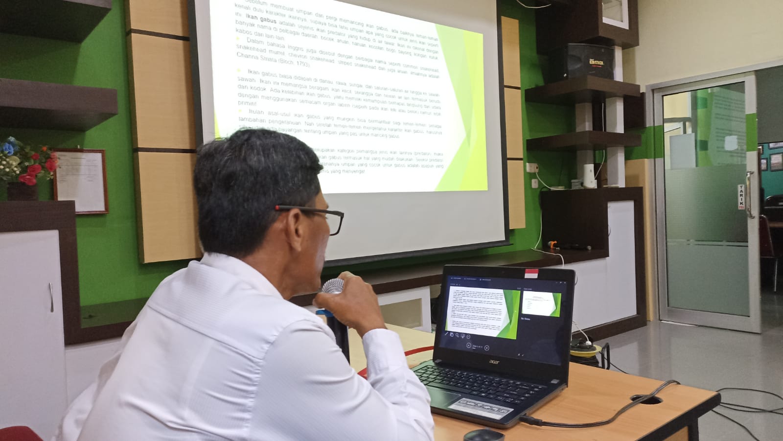 dengan judul “Tips Memancing Ikan Gabus”. Pemateri yang mengaku memiliki