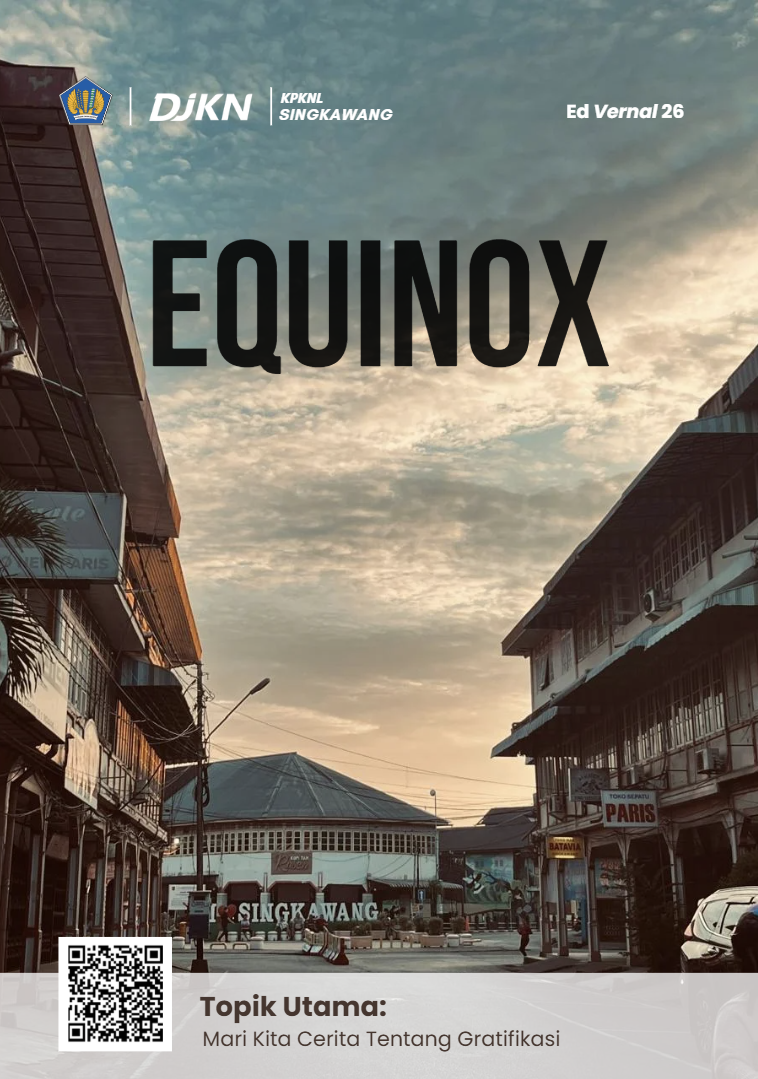 KPKNL Singkawang telah menerbitkan Majalah EQUINOX Edisi Vernal 2026 dengan Topik Utama “Mari Kita Cerita Tentang Gratifikasi”. Kehadiran majalah ini menjadi sarana menyampaikan informasi terkini mengenai kegiatan, capaian, dan dinamika KPKNL Singkawang.