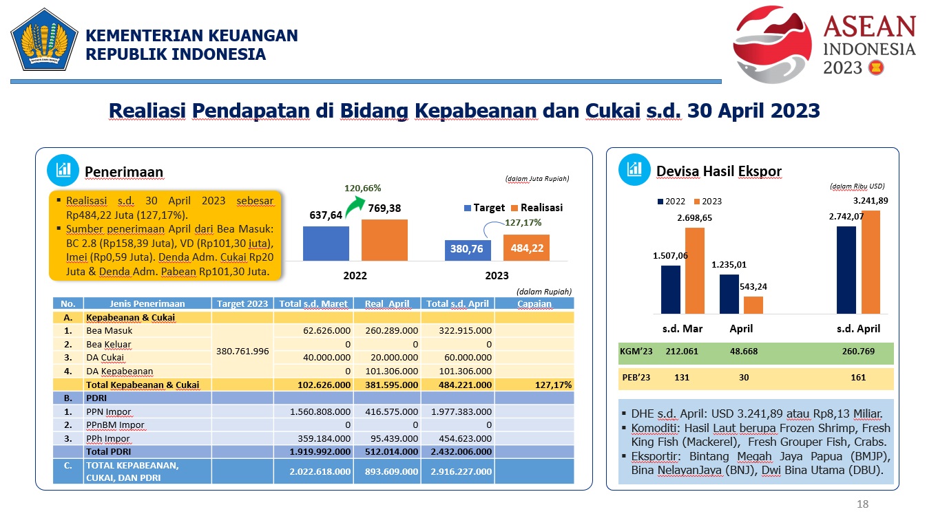 30 April 2023, secara nasional pendapatan negara yang sudah berhasil diperoleh