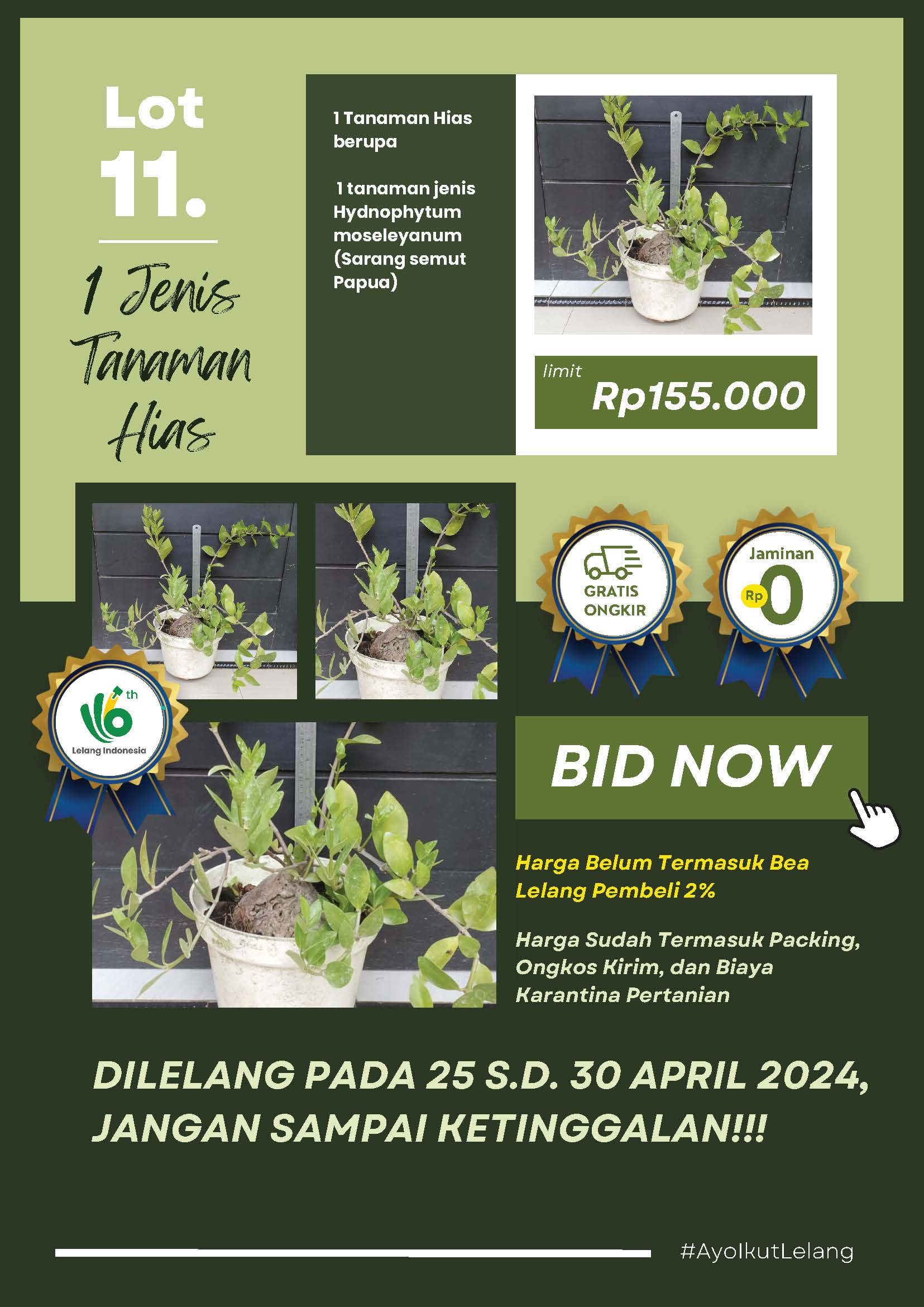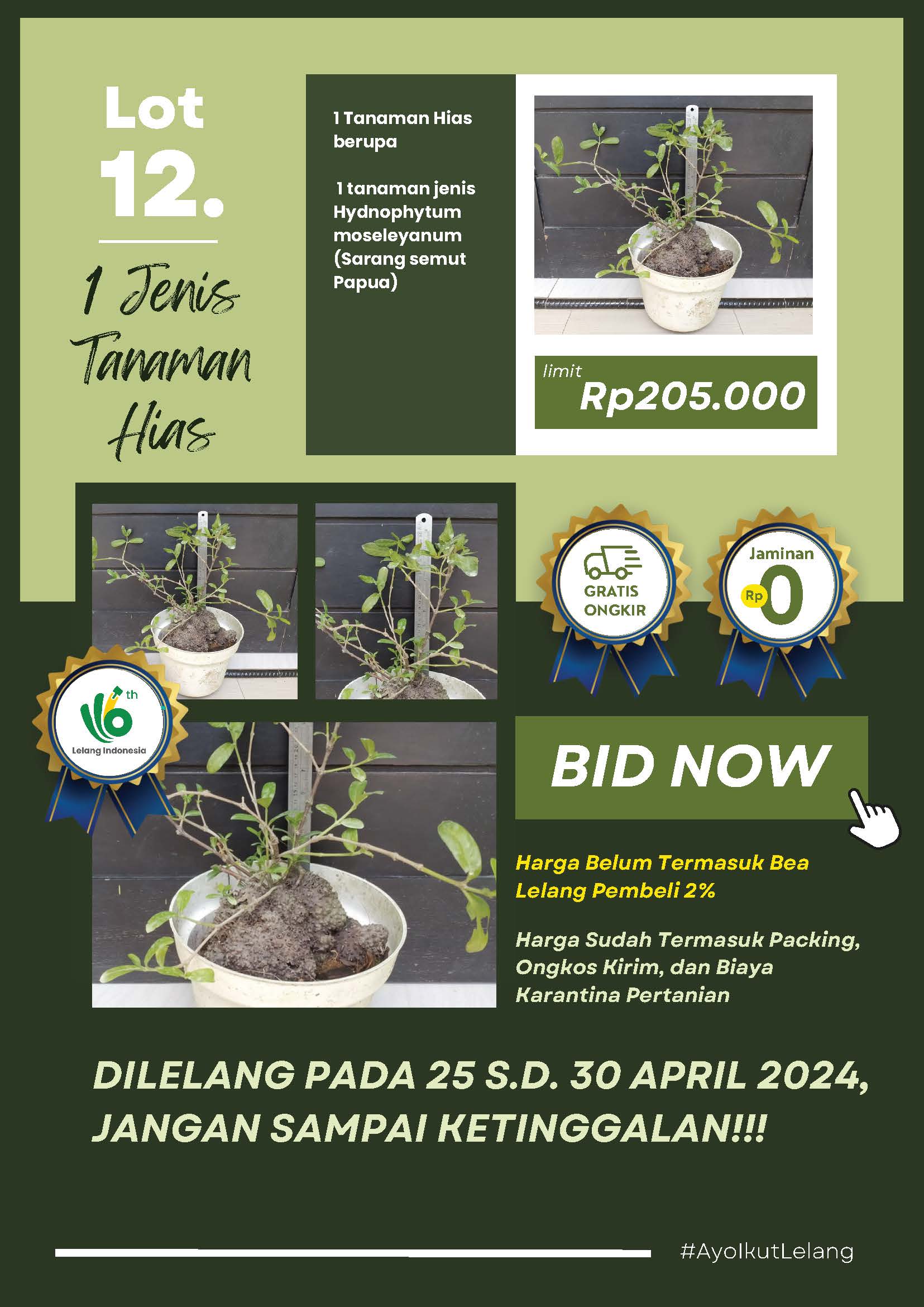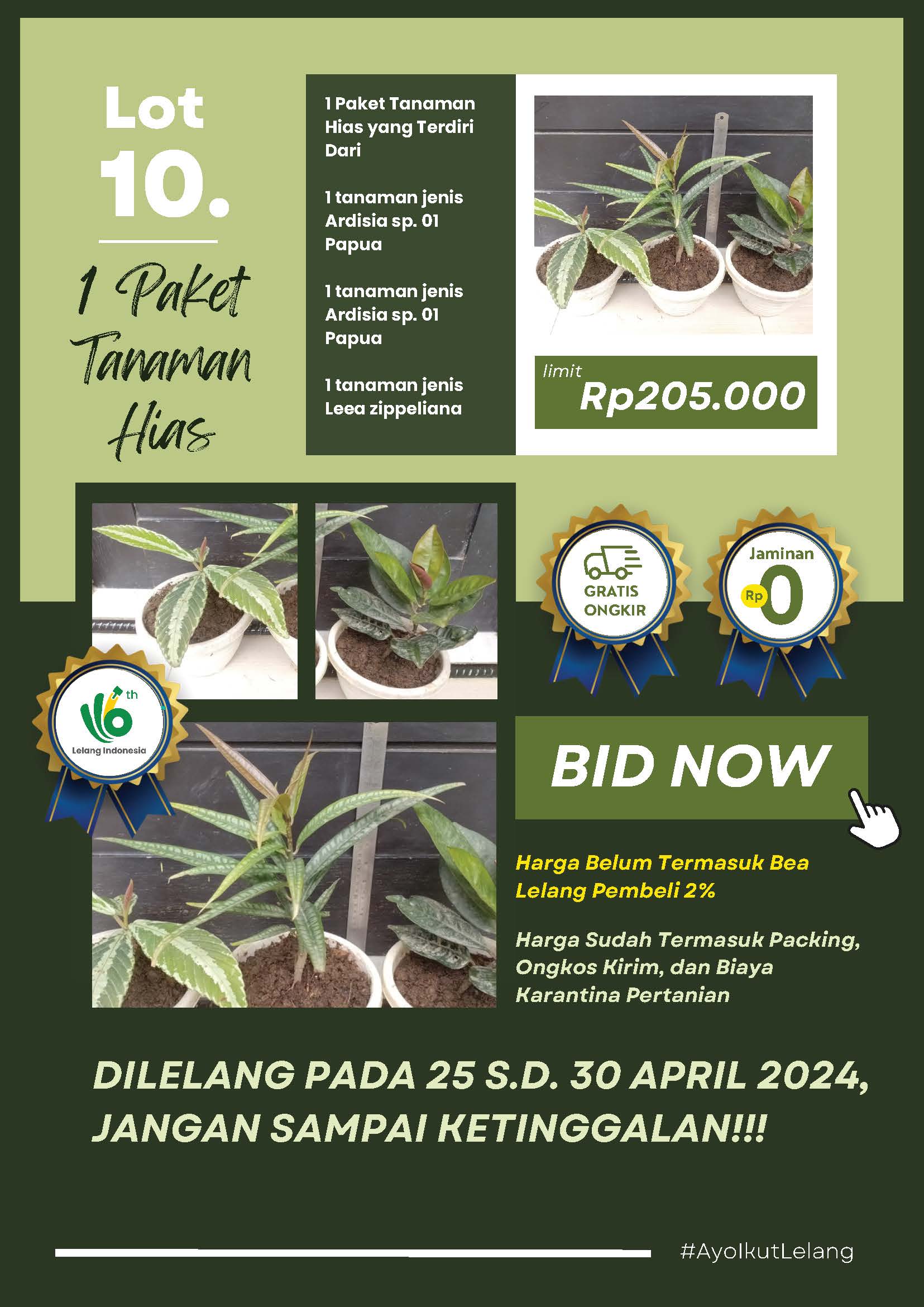 lelang Aneka Tanaman Hias pada tanggal 30 April 2024, yang dilaksanakan di Azzulfa Garden,