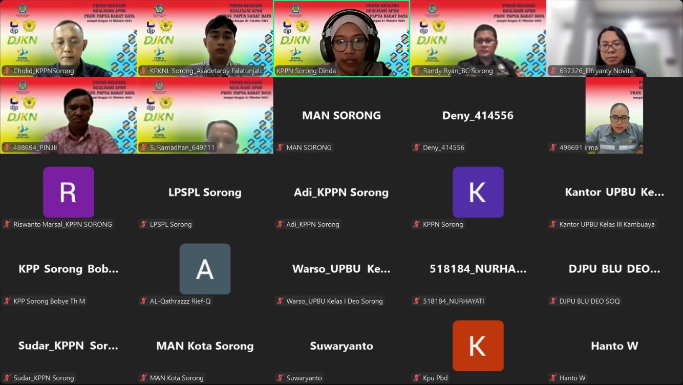 Pers Realisasi APBN Provinsi Papua Barat Daya sampai bulan Oktober 2024 secara daring melalui aplikasi zoom