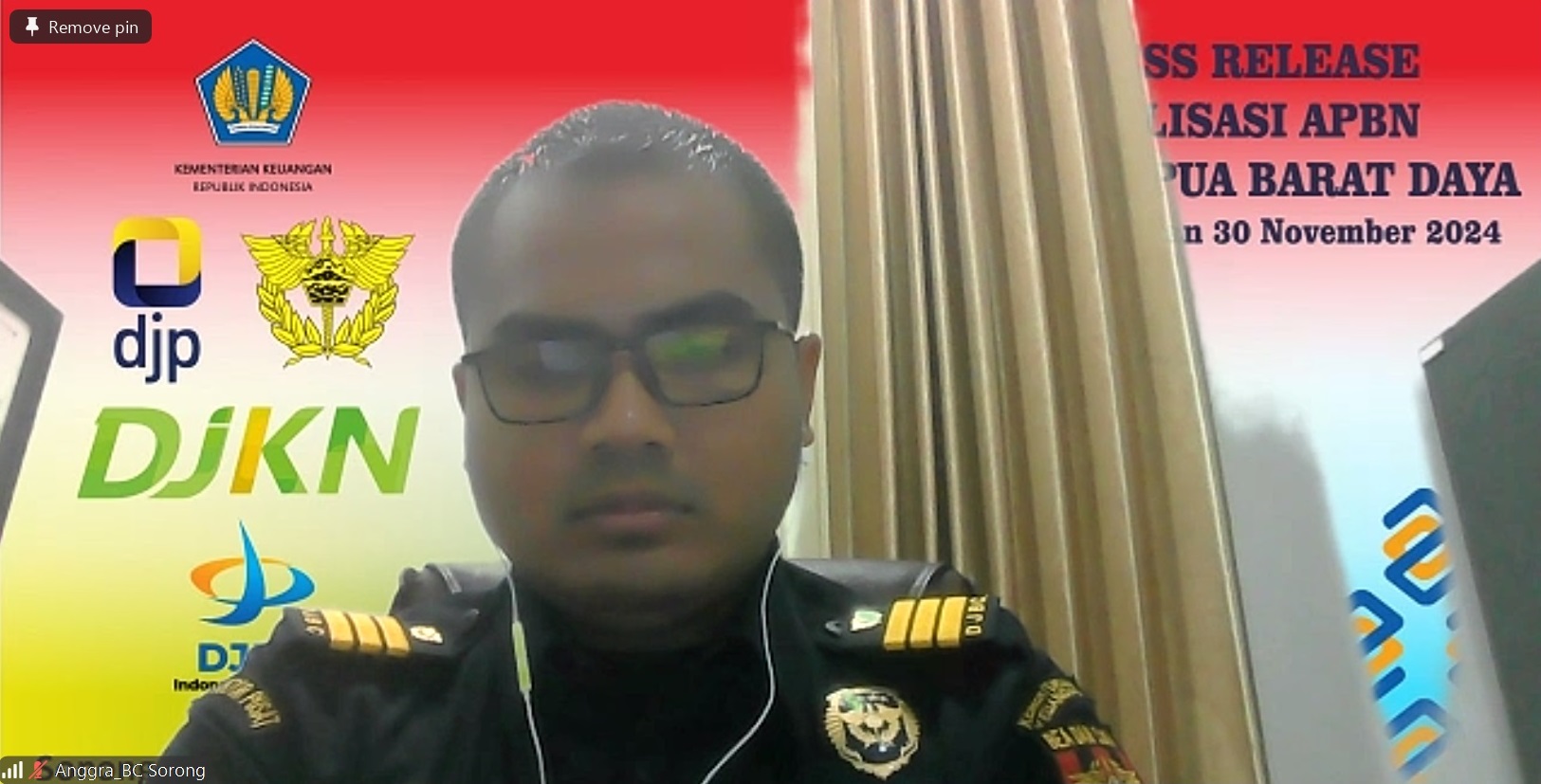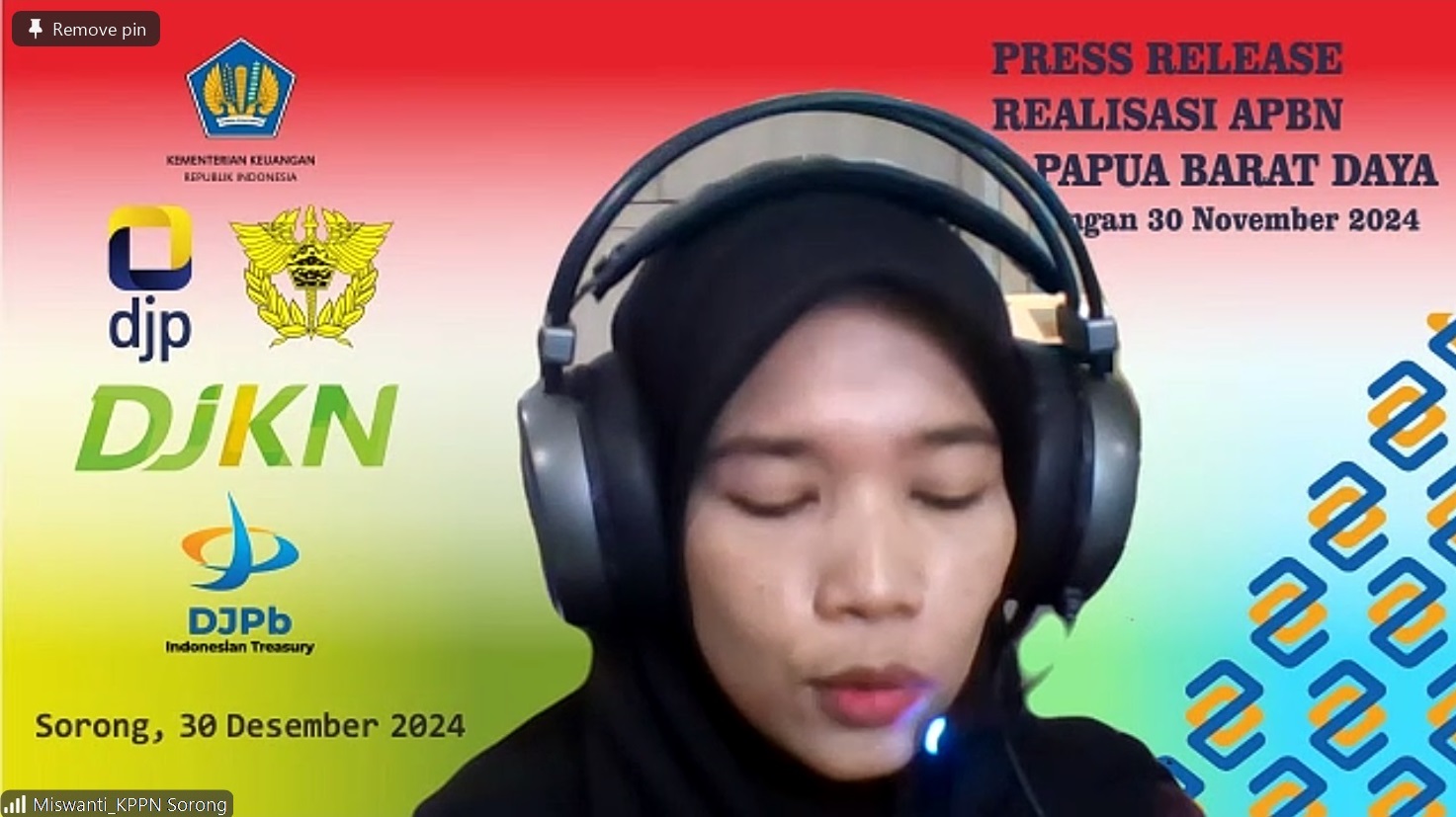 aplikasi zoom meeting. Siaran Pers bertempat di Aula KPPN Sorong dan dihadiri