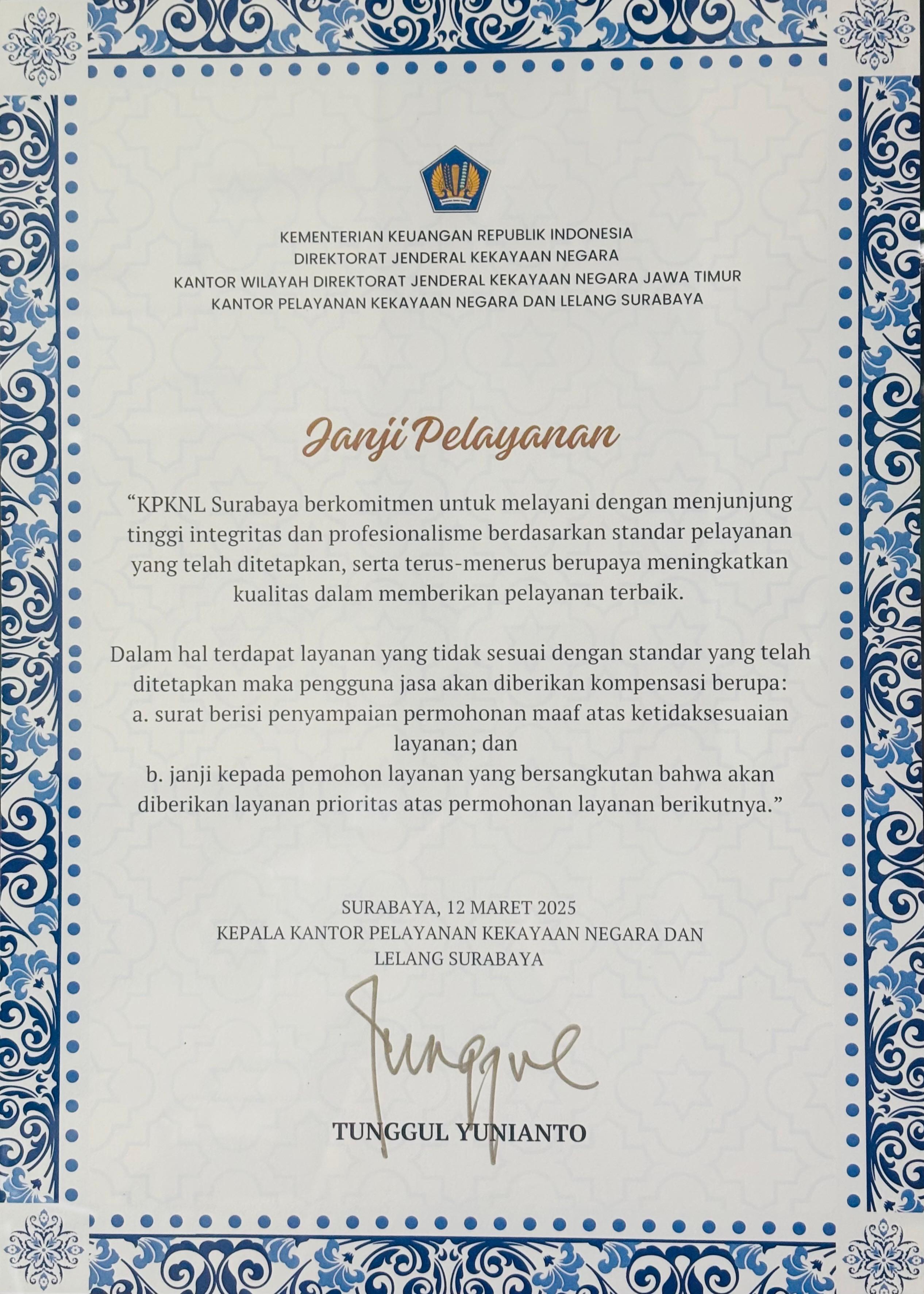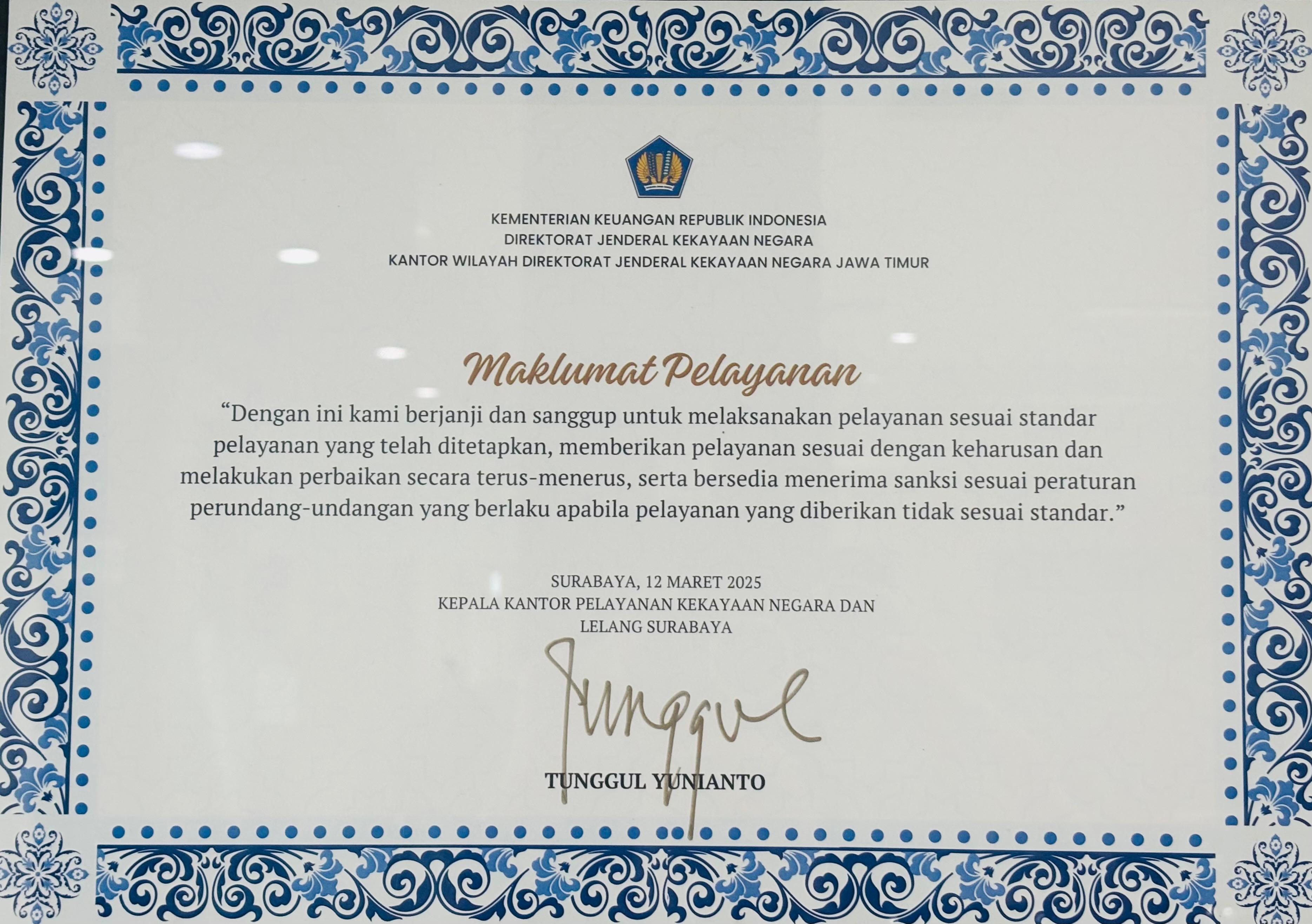 Maklumat Pelayanan KPKNL Surabaya