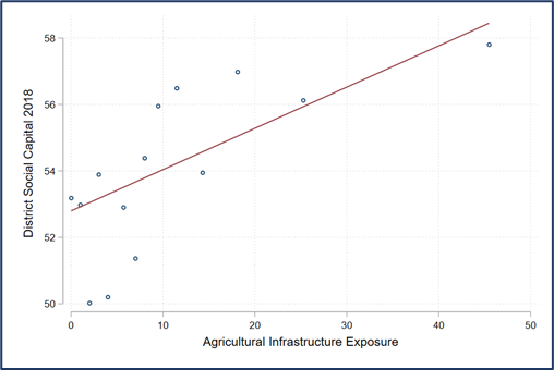 Gambar 5 Korelasi Eksposure Infrastruktur Pertanian dengan Modal Sosial 2018