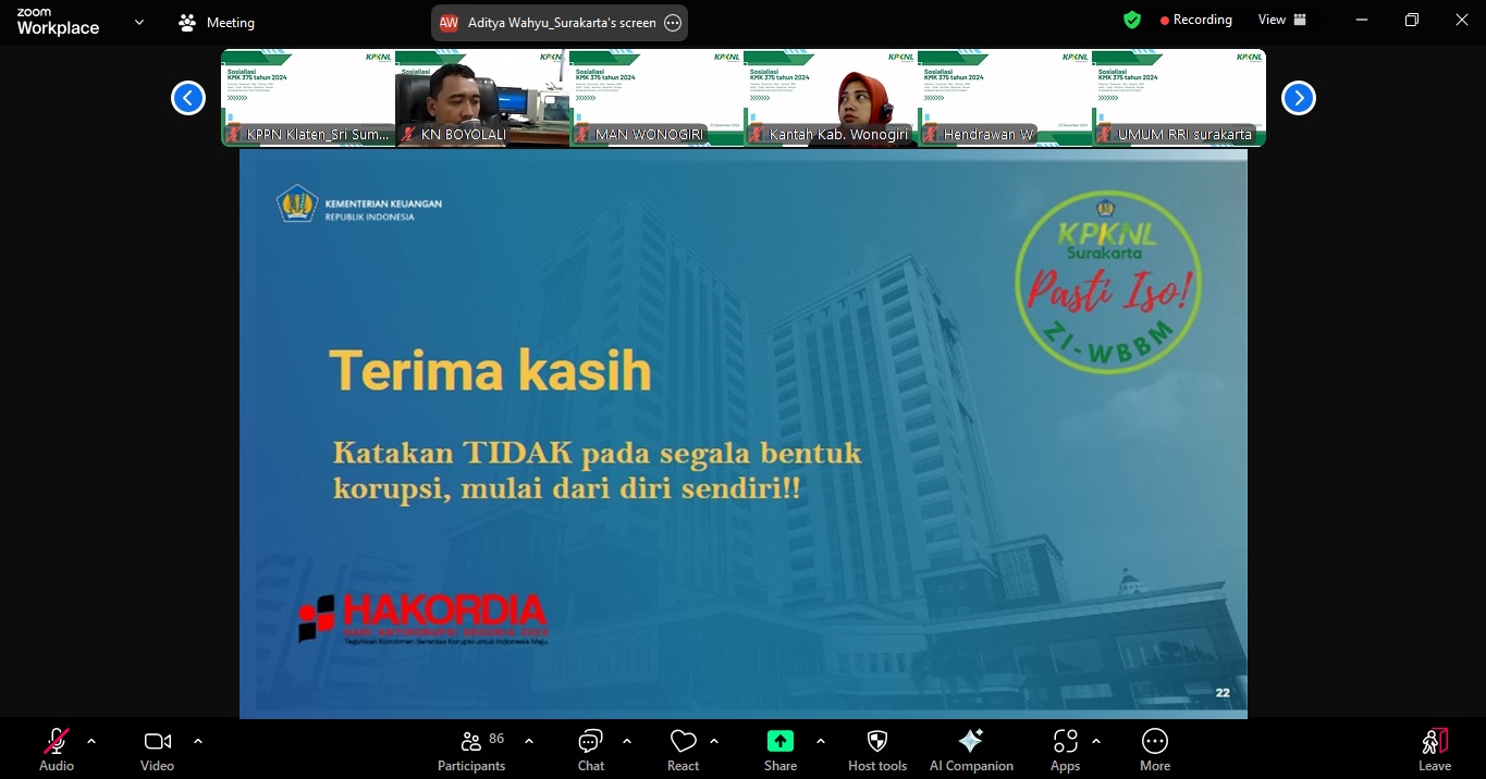 daring melalui Zoom Meeting dengan peserta satuan kerja di wilayah kerja KPKNL