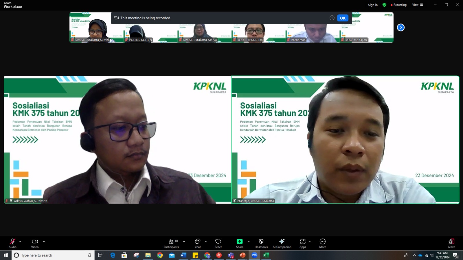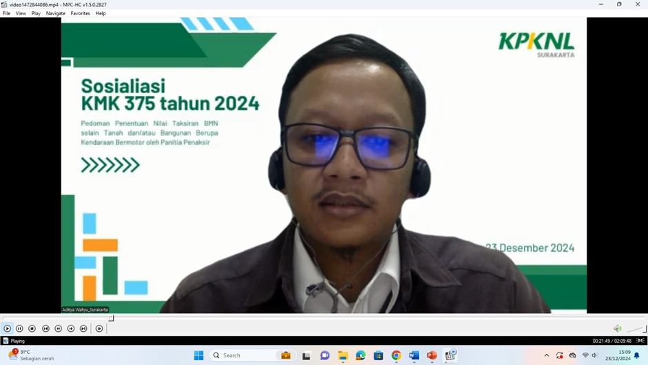 Wahyu selaku Penilai Pemerintah Ahli Muda KPKNL Surakarta serta dimoderatori