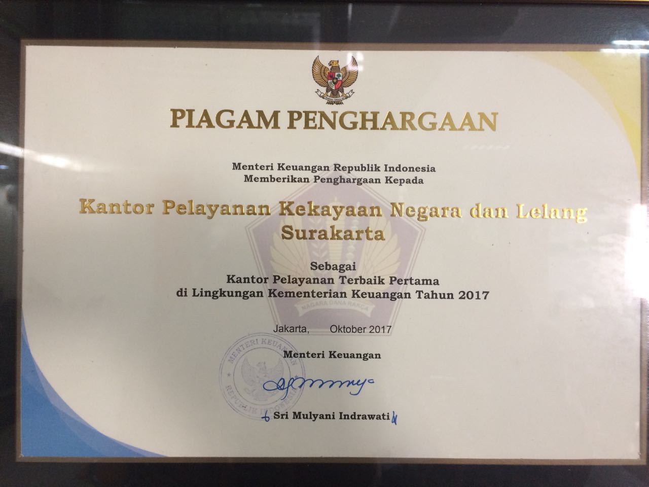 Negara dan Lelang (KPKNL) Surakarta berhasil meraih predikat sebagai Kantor