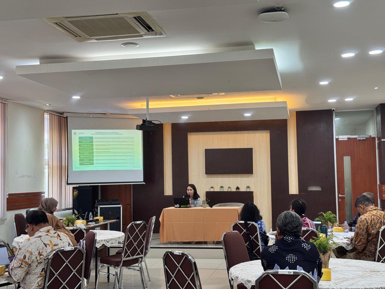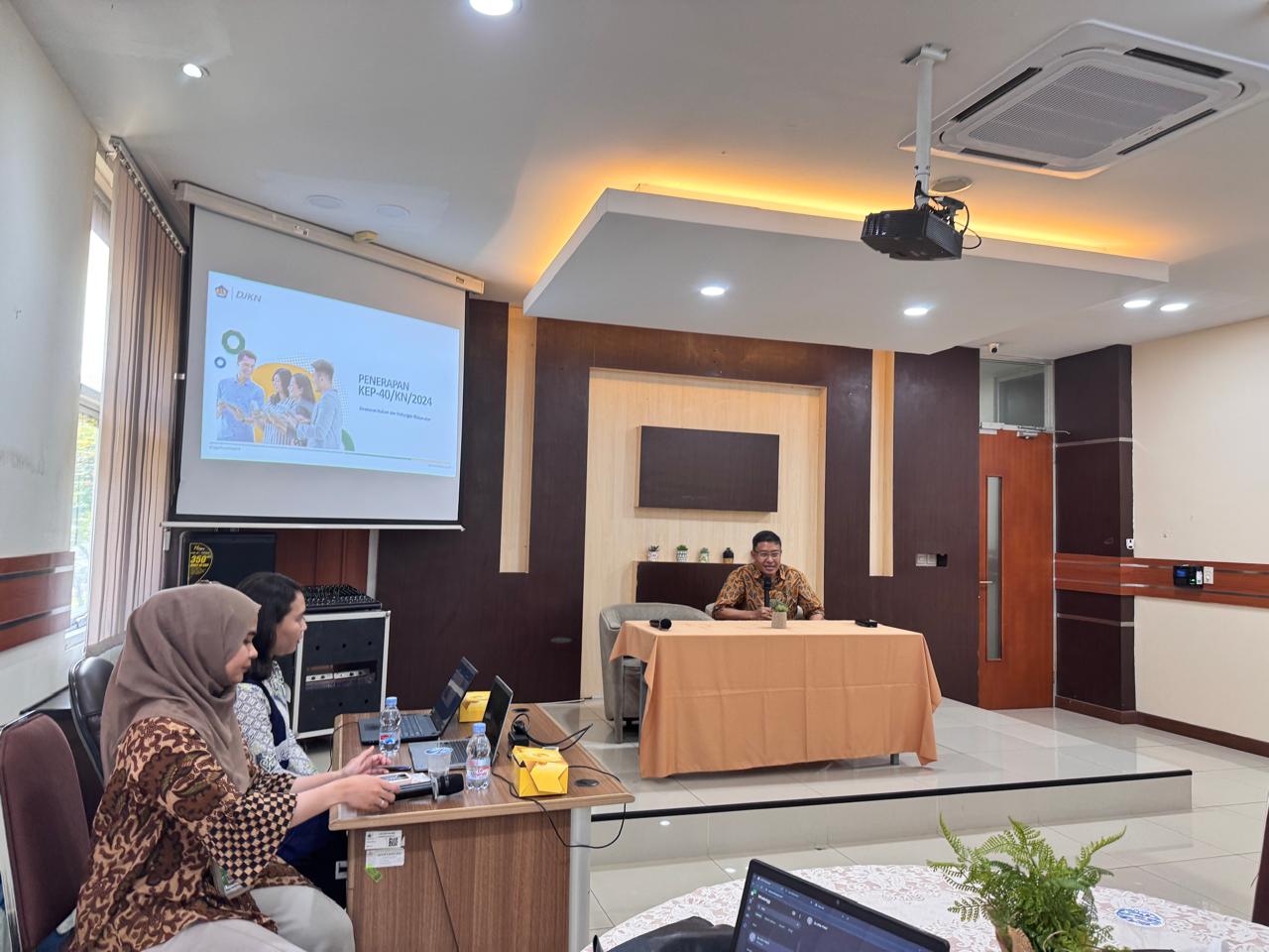Tangerang (26/9) KPKNL Tangerang I menyelenggarakan kegiatan Sosialisasi KEP-40/KN/2024 tentang Pedoman Pengelolaan Layanan Informasi di Lingkungan Direktorat Jenderal Kekayaan Negara (DJKN). Direktorat Jenderal Kekayaan Negara (DJKN) terus berkomitmen untuk meningkatkan kualitas pelayanan publik, khususnya dalam hal pelayanan. Hal ini diwujudkan melalui penerbitan KEP-40/KN/2024 tentang Pedoman Pengelolaan Layanan Informasi di Lingkungan DJKN. Acara ini diikuti oleh seluruh pegawai dengan penuh antusiasme sebagai bagian dari komitmen dalam menghadirkan layanan publik yang transparan, akuntabel, dan responsif. KPKNL Tangerang I mengundang narasumber dari Direktorat Hukum dan Hubungan Masyarakat yaitu Nofitri. Acara dibuka oleh Intan Aprilia Putri, selaku pemandu acara, dilanjutkan dengan sambutan Kepala KPKNL Tangerang I, pemaparan oleh Narasumber dan penutup.