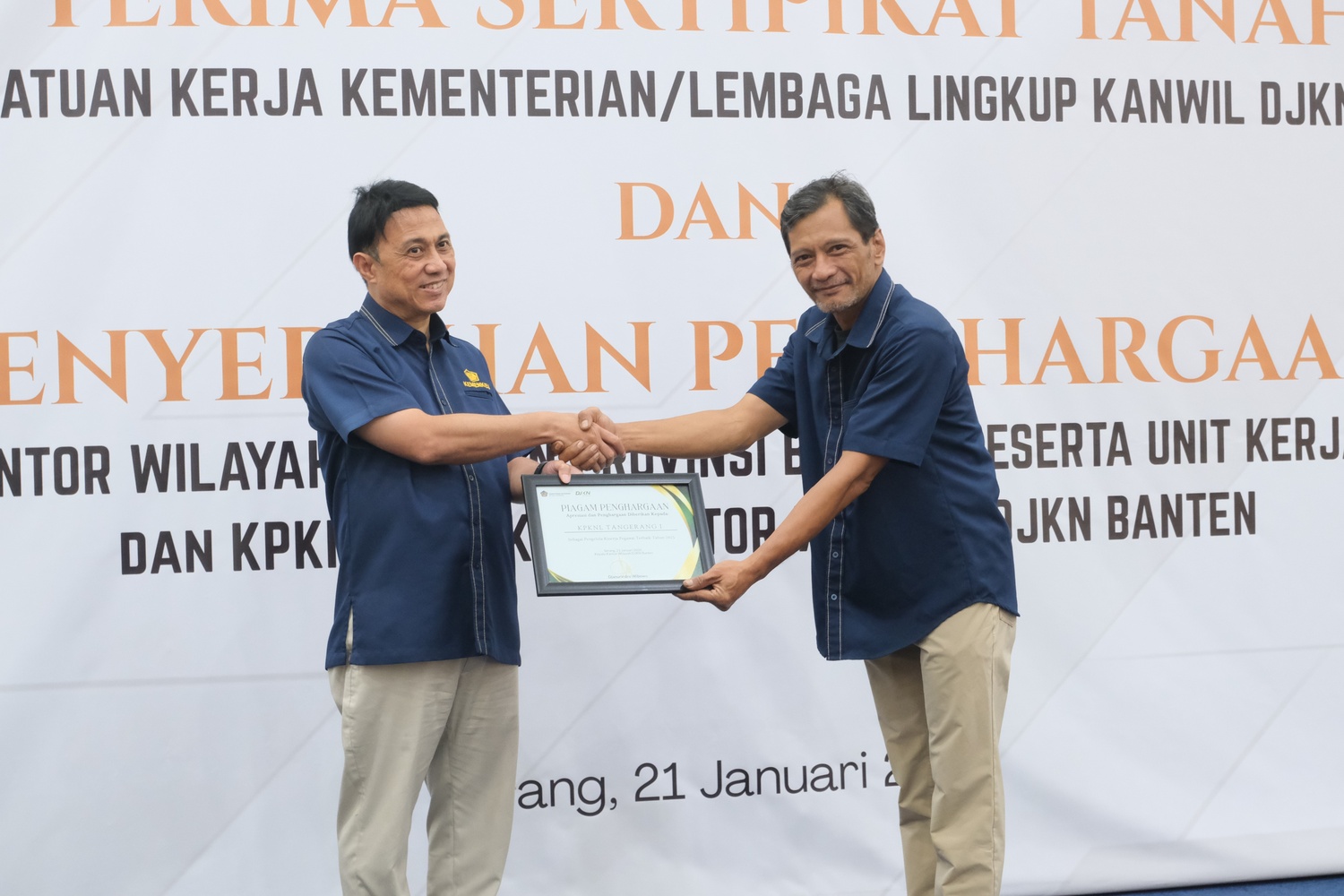 diserahkan oleh Kantor Wilayah DJKN Banten dalam kegiatan Penyerahan Apresiasi dan Penghargaan atas