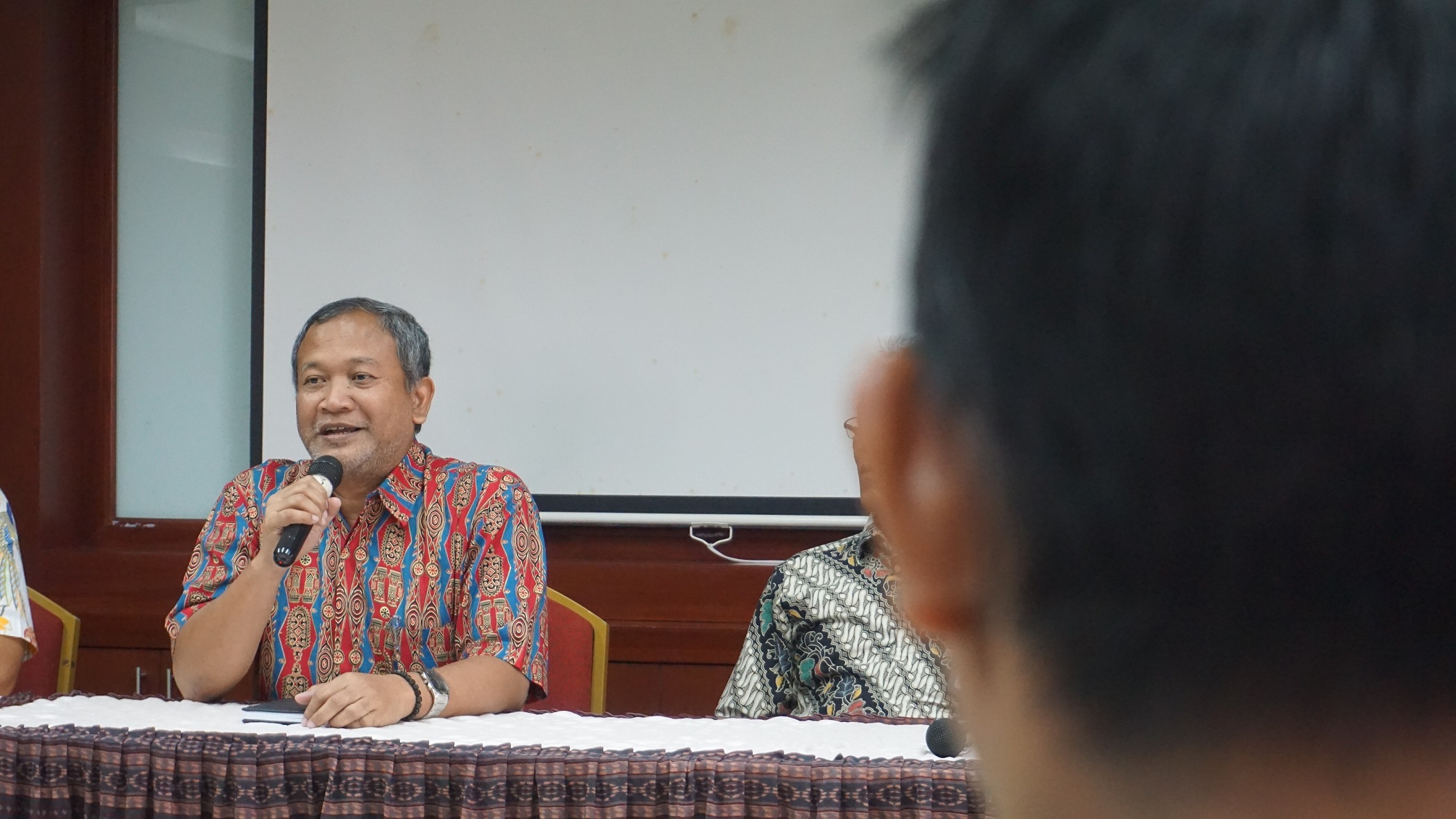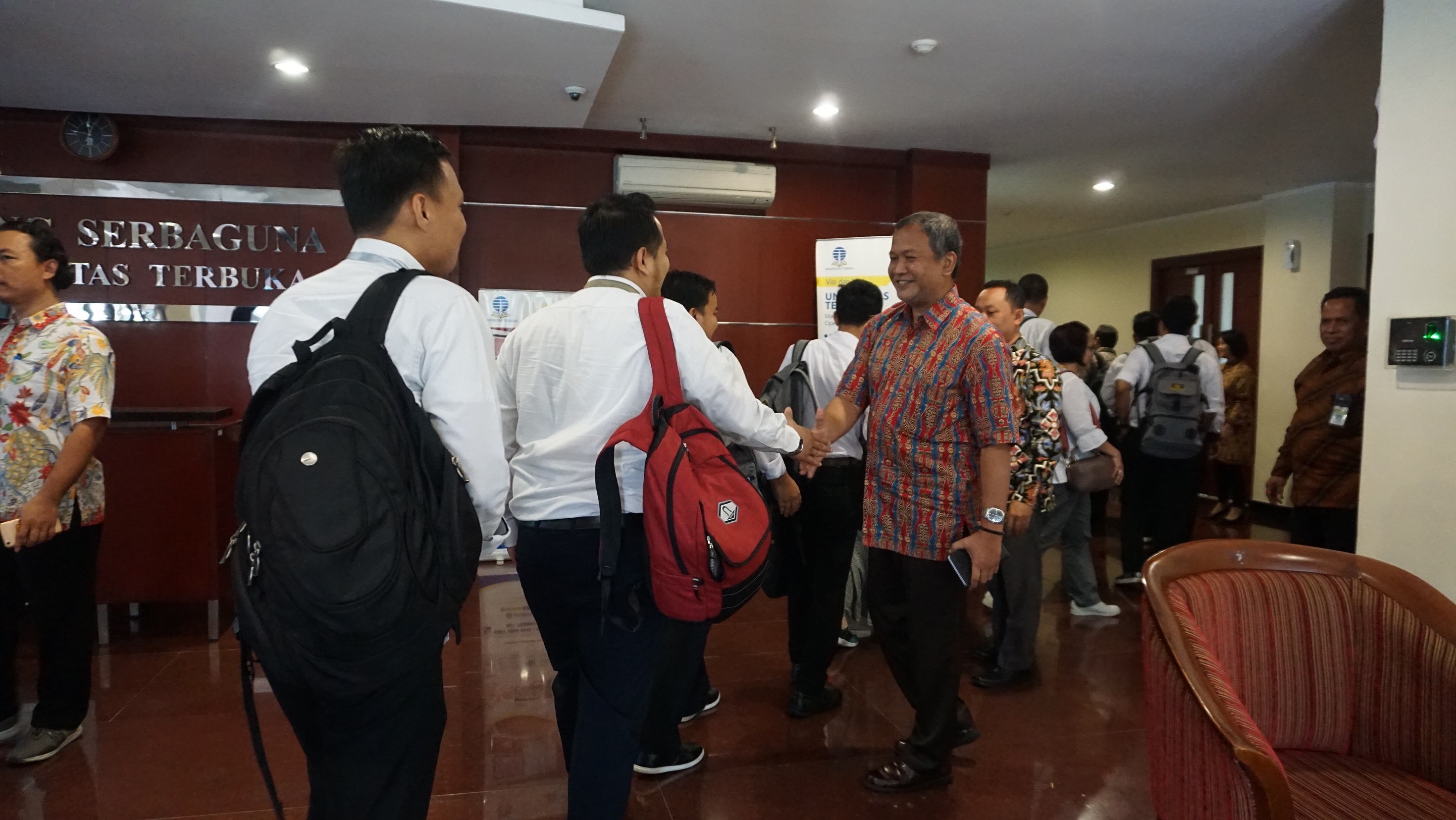 Bagian Umum dan Kerumahtanggaan UT, Djimo Subrobo, menyambut para peserta