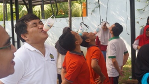 kerupuk, lomba minum susu menggunakan botol (dot), lomba lempar balon isi air,