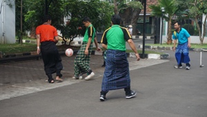 lomba tarik tambang, lomba futsal berkostum sarung, lomba joget balon berpasangan,