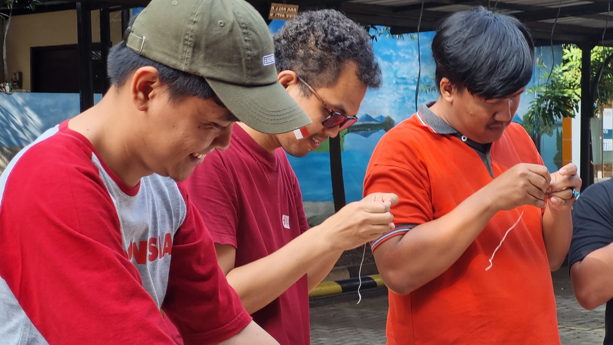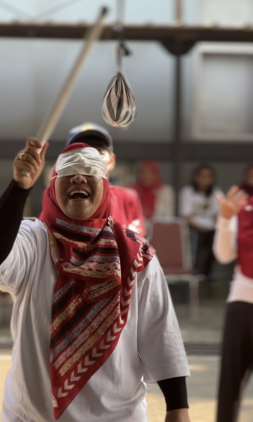 makan kerupuk, memasukan benang ke dalam jarum, balap kelereng, memukul kantong