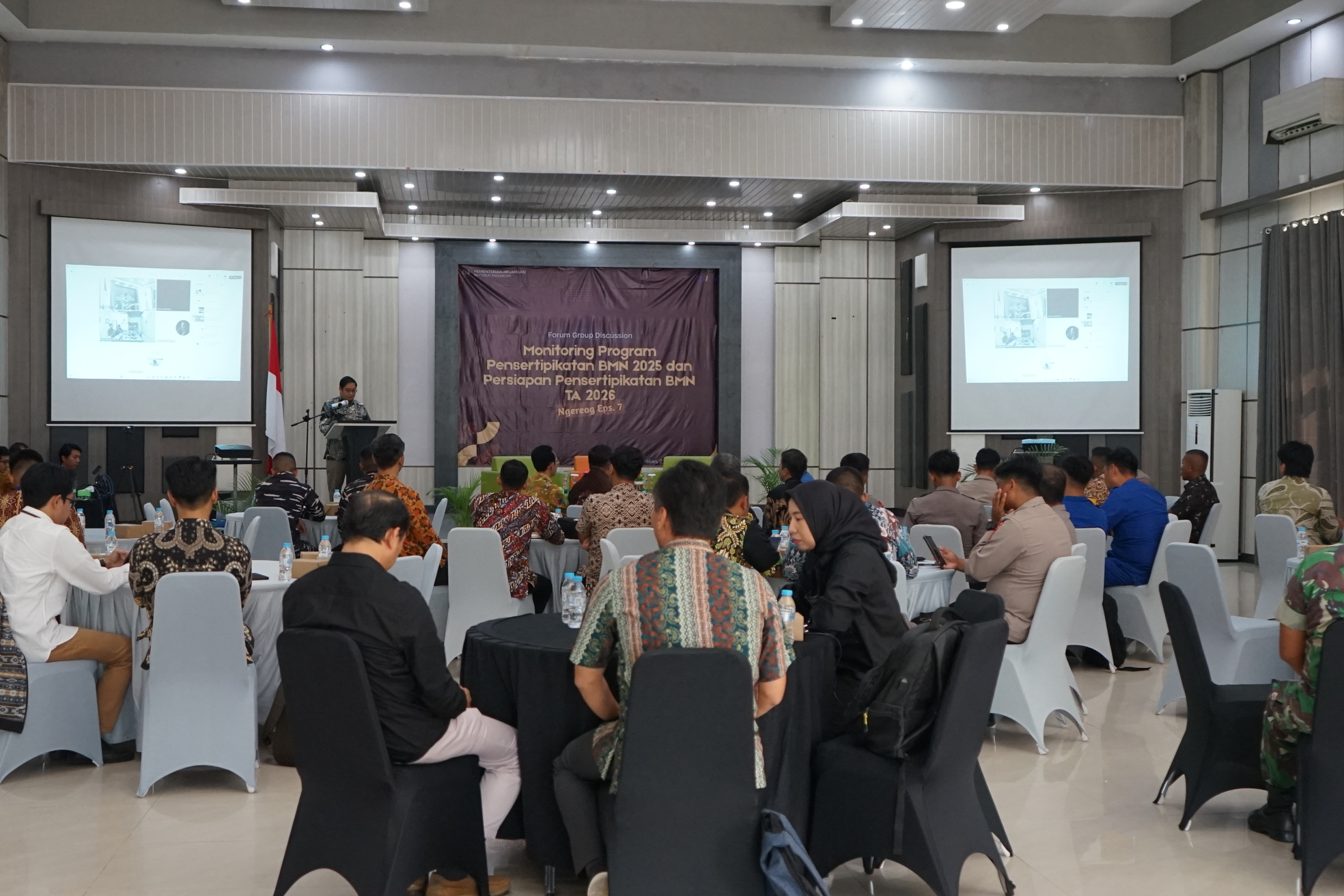 Tarakan, 2 Oktober 2025 – Kantor Wilayah Direktorat Jenderal Kekayaan Negara (DJKN) Kalimantan Timur dan Utara bersama KPKNL Tarakan menyelenggarakan Focus Group Discussion (FGD) bertajuk Monitoring Program Pensertipikatan BMN Tahun 2025 dan Persiapan Pensertipikatan Tahun Anggaran 2026. Kegiatan ini berlangsung secara luring di Paguntaka Ballroom, Tarakan, dan dihadiri oleh 25 satuan kerja di wilayah Kalimantan Utara.