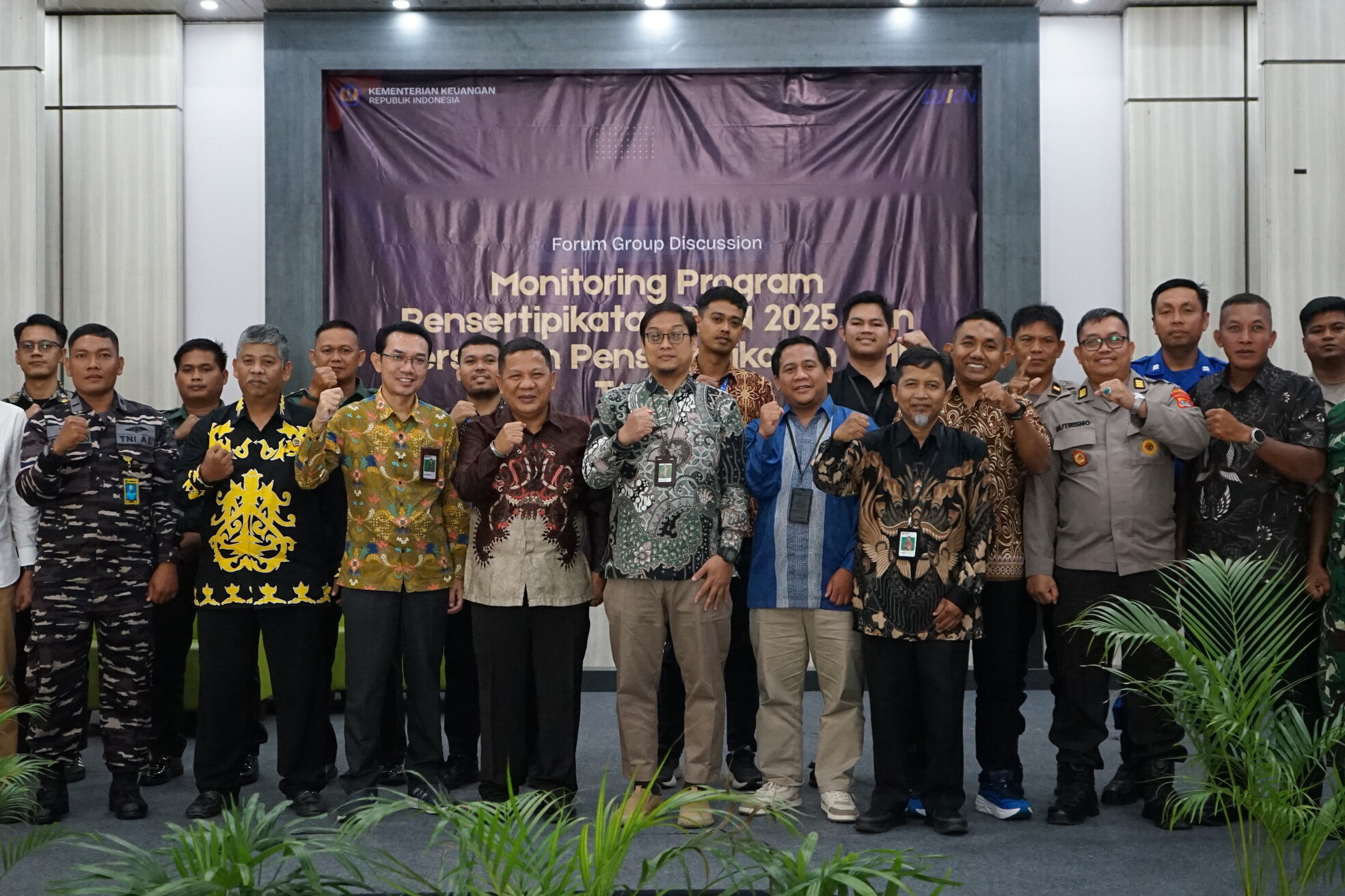 Melalui kegiatan ini, DJKN menegaskan komitmennya untuk mengedepankan prinsip integritas dalam pengelolaan kekayaan negara. Hasil FGD diharapkan menjadi pijakan penting dalam memperbaiki strategi dan memperkuat kerja sama lintas sektor, sehingga target pensertipikatan BMN tahun 2025 serta rencana di tahun 2026 dapat tercapai lebih optimal. (Seksi Hukum dan Informasi)